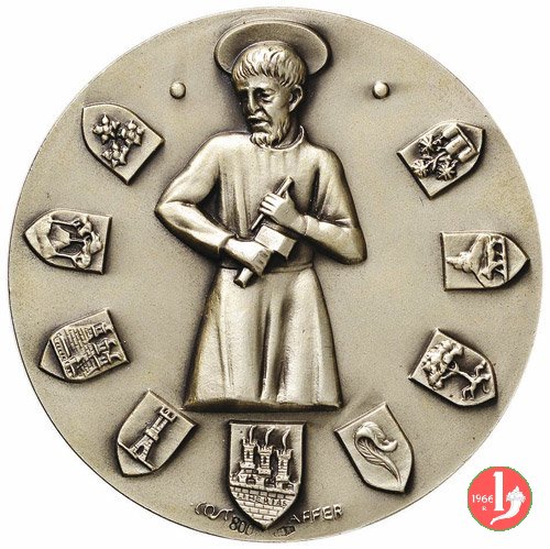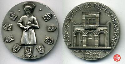 | Medaglia coniata, realizzata nel 1963 per ricordare l'inaugurazione della nuova sede della Cassa di Risparmio di San Marino. | ||||||