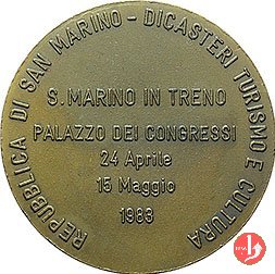 Medaglia coniata, realizzata nel 1983 per ricordare il Congresso sulla ferrovia di collegamento tra Rimini e San Marino. | |||