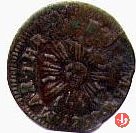 Sole raggiante, intorno MAR • THR • m • R • DVX • MAN •. SOLDO DI • MAN • TOVA su tre righe tra globetti.