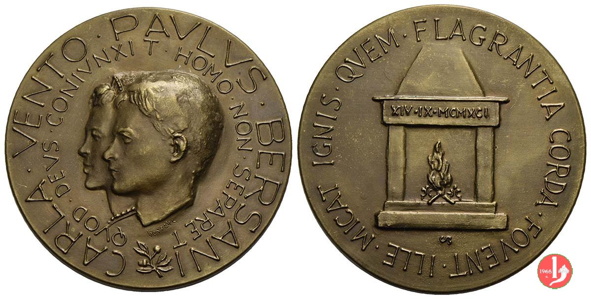 Nozze di Carla Vento e Paolo Bersani 1991 (Medaglia)