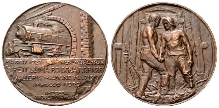 In basso: MARZO 1921 _ NOVEMBRE 1926 = DIRETTISSIMA BOLOGNA - FIRENZE = GALLERIA M. ADONE M.L. 7135 = IMBOCCO NORD = IMPRESA = AUGUSTO PAGANI