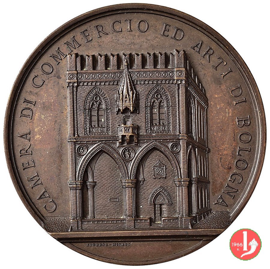 Medaglia coniata, emessa all'inizio del '900, per premiazioni varie della Camera di Commercio di Bologna ed utilizzata per diversi anni con differenti conii del verso (vedi elenco note).