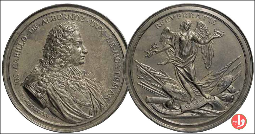 Medaglia fusa, realizzata nel 1735 per ricordare Giuseppe Carillo de Albornoz (duca di Montemar) (1671-1747). Vedi anche in XIX secolo: Napoli | ||||||