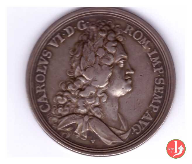 | Medaglia coniata, emessa il 20-02-1720 a ricordo del Trattato di l'Haia con la cessione del Regno di Sicilia dai Savoia a Carlo VI d'Asburgo (Carlo III). | ||||||