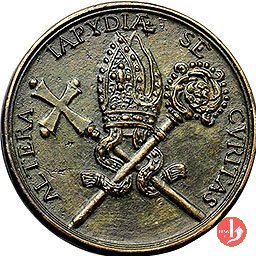 R/ ALTERA IAPIDIAE SECVRITAS. Mitra episcopale appoggiata tra una croce astile ed un pastorale