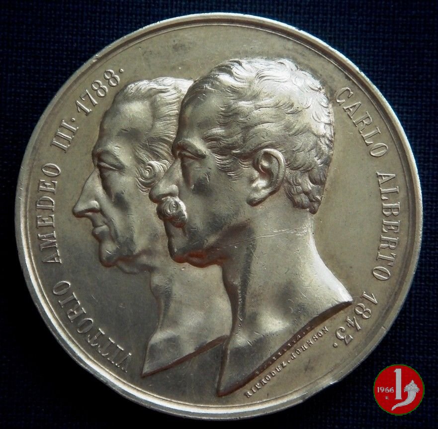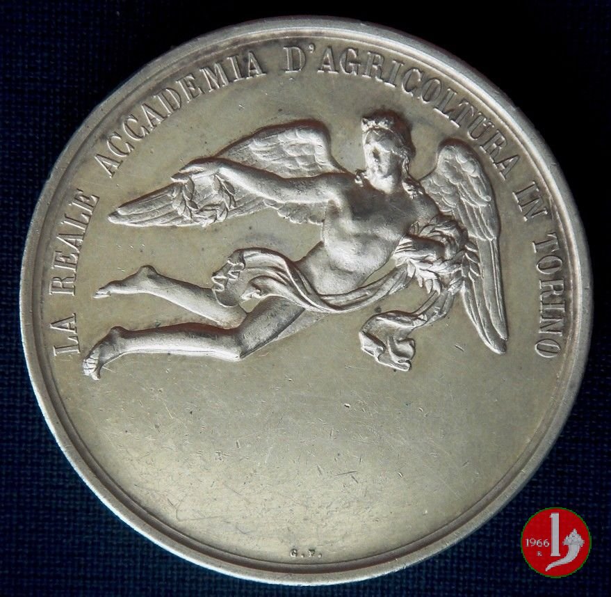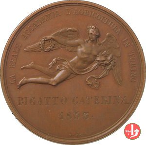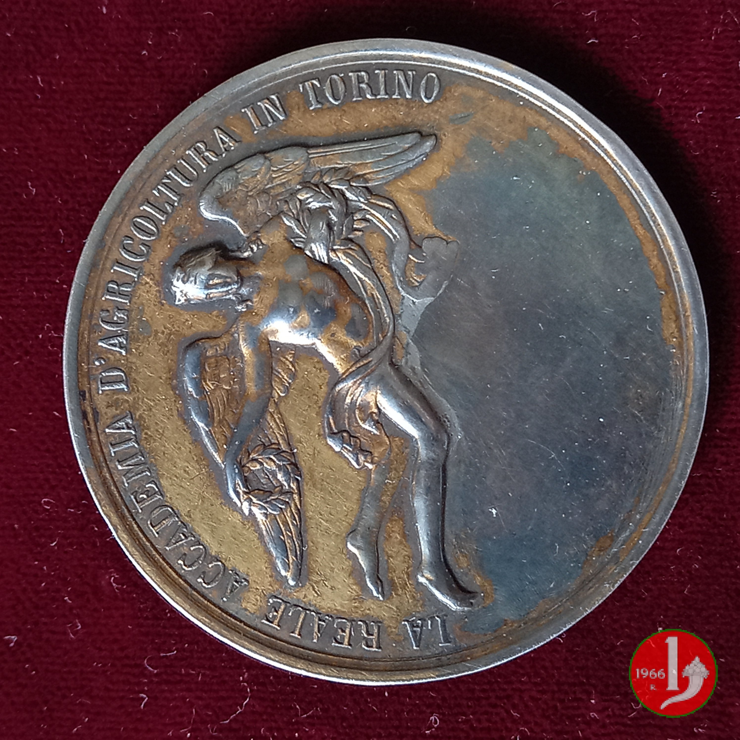 | Medaglia coniata, emessa nel 1843, per celebrare l'anniversario di fondazione della Reale Accademia d’Agricoltura di Torino. | ||||||