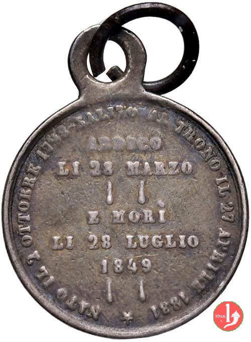 | Medaglia coniata, emessa il 14-08-1849, per ricordare Carlo Alberto Re di Sardegna. | ||||||