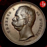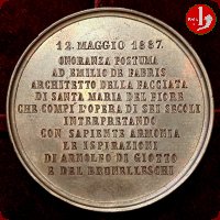 Medaglia coniata, emessa il 12-05-1887, per ricordare lo scoprimento della facciata del Duomo di Firenze alla presenza di Re Umberto I e della Regina Margherita di Savoia. La cattedrale di Santa Maria del Fiore fu ultimata e consacrata nel 1436, ma la facciata era incompiuta e veniva occasionalmente dotata di finiture provvisorie, nel corso dei secoli numerose proposte venivano scartate e fu completata solo nel 1871 su progetto di Emilio De Fabris (1807-1883). | |||||