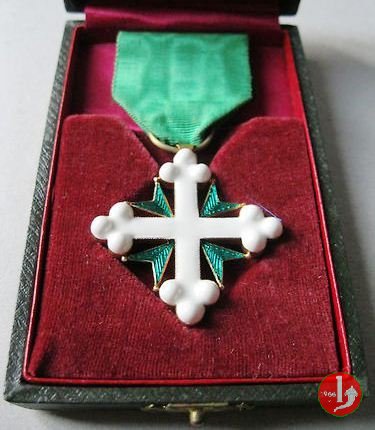 Decorazione per l'Ordine Cavalleresco di Casa Savoia dei Santi Maurizio e Lazzaro. L'ordine dei SS. Maurizio e Lazzaro, ha origine dall'unione, avvenuta nel 1572, dei due ordini di S. Maurizio e di S. Lazzaro. Antichissimo l'ordine dei cavalieri di San Lazzaro, nato come ordine ospitaliero a Gerusalemme, in un ospedale di lebbrosi e al tempo del primo regno latino dei crociati. Vittorio Emanuele II il 20 febbraio 1868 stabilí per l'ammissione nell'ordine le regole che vigono tuttora: viene destinato a ricompensare le benemerenze nelle carriere civili e militari. E' in cinque classi: cavalieri di gran croce, grandi ufficiali, commendatori, cavalieri ufficiali e cavalieri. | ||||||||||||