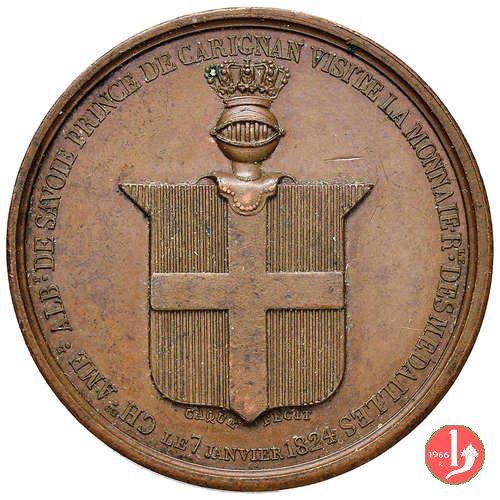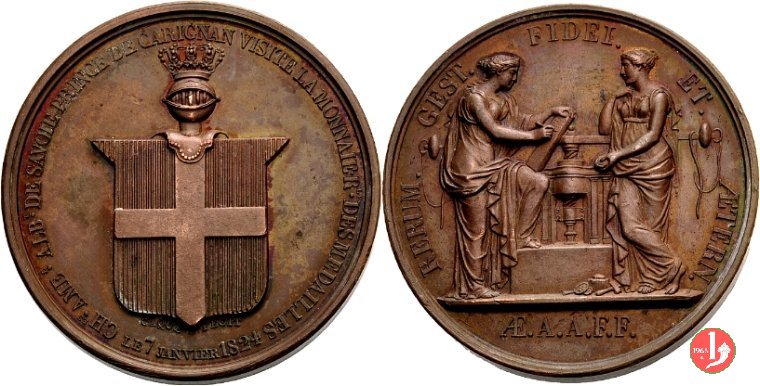 Medaglia coniata, emessa il 07-01-1824, per ricordare la visita di Carlo Alberto, Principe di Carignano, alla Zecca di Parigi. | |||||||