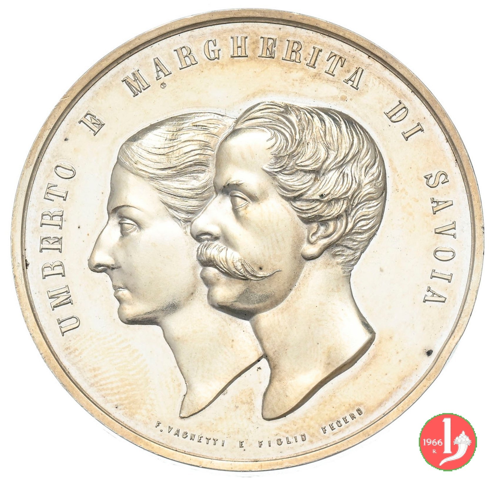 Medaglia coniata, emessa il 30-04-1868, per ricordare le nozze di Umberto e Margherita.
