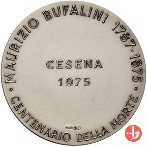 Medaglia coniata, realizzata nel 1975 con fondo opaco dallo Stabilimento Stefano Johnson di Milano per il Circolo Filatelico e Numismatico di Cesena, a ricordo di Maurizio Bufalini (1787-1875) Medico.