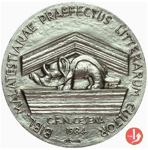 | Medaglia coniata, emessa nel 1984 con fondo opaco dallo Stabilimento Stefano Johnson di Milano per il Circolo Filatelico e Numismatico di Cesena, a ricordo del centenario della nascita di Renato Serra, già Direttore della Biblioteca Malatestiana. | ||||||