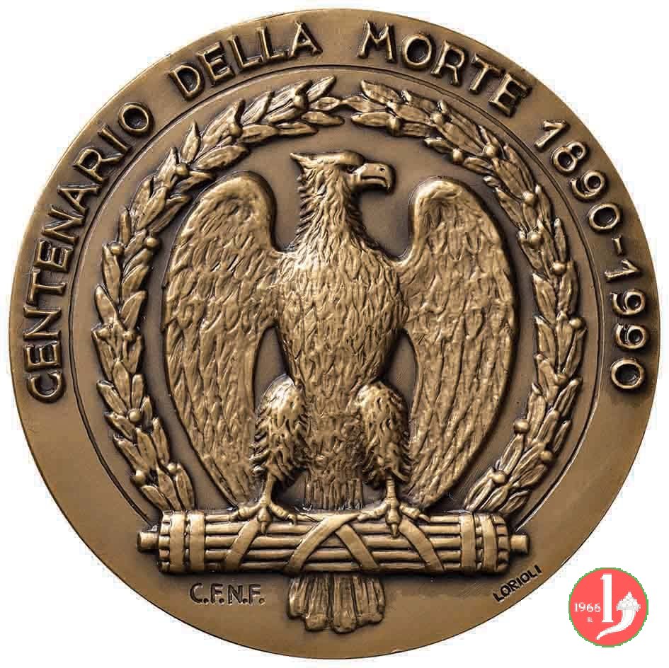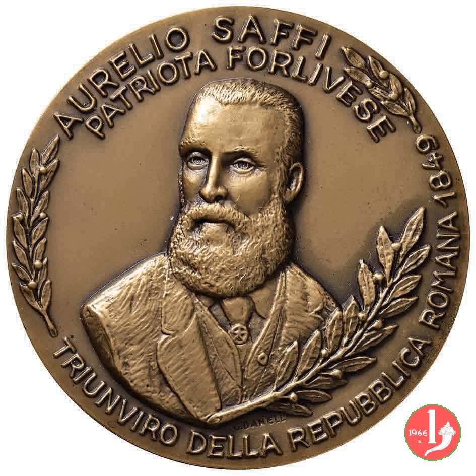 Medaglia coniata, realizzata nel 1990 dallo Stabilimento Fratelli Lorioli di Milano per il Circolo Filatelico e Numismatico Forlivese, a ricordo del centenario della morte di Aurelio Saffi (1819-1890) patriota e politico.