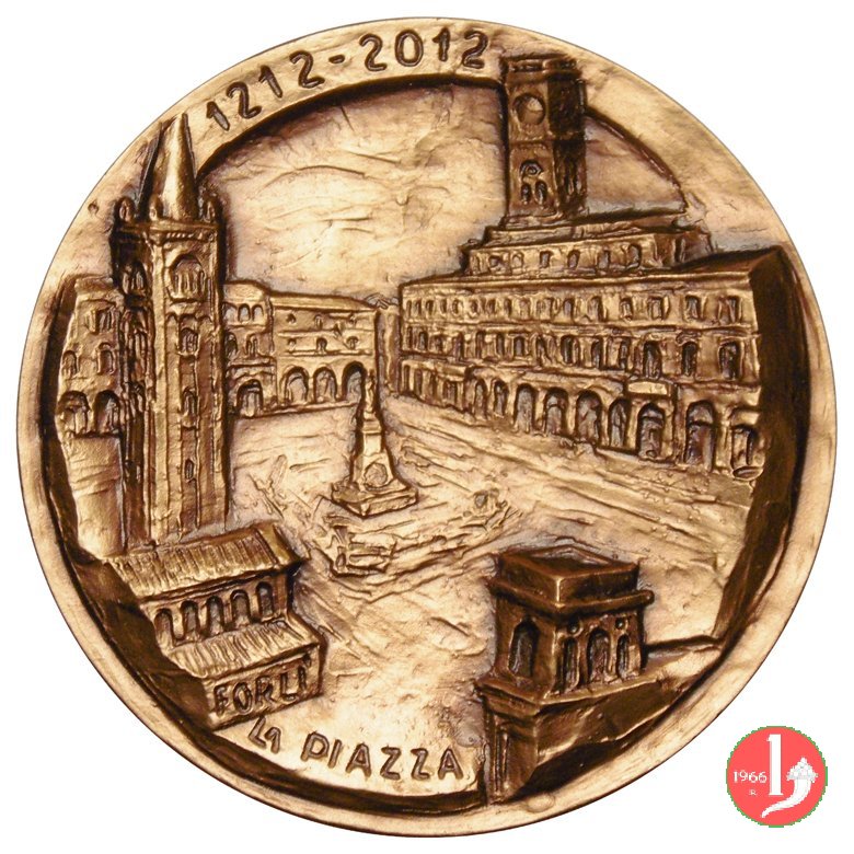 Medaglia coniata, realizzata nel 2012 dallo Stabilimento Picchiani & Barlacchi di Firenze per il Circolo Filatelico e Numismatico Forlivese, a ricordo dell'ottocentesimo anniversario di costruzione di Piazza Saffi a Forlí.