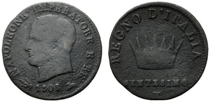 Contorno: Filetti circolari in incuso per la zecca di Venezia o in rilievo per la zecca di Bologna. Ornato per la zecca di Milano. | |||||||||||||||||