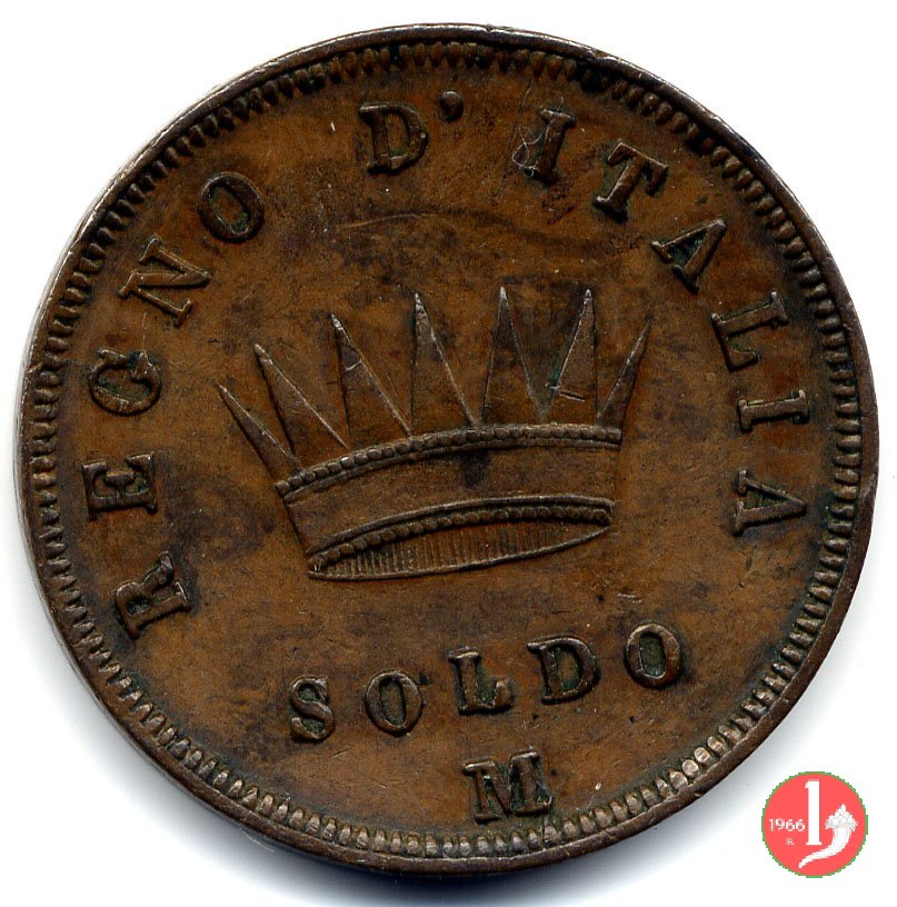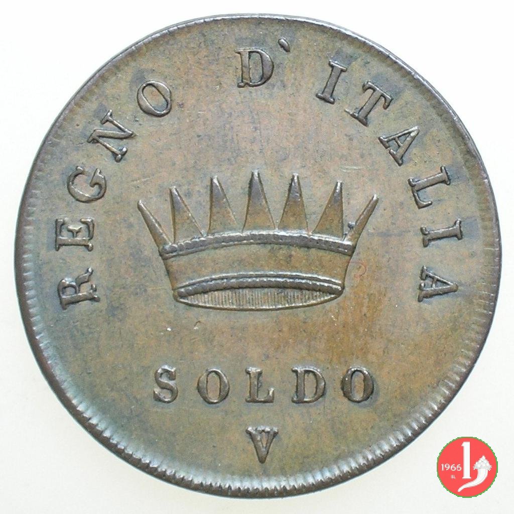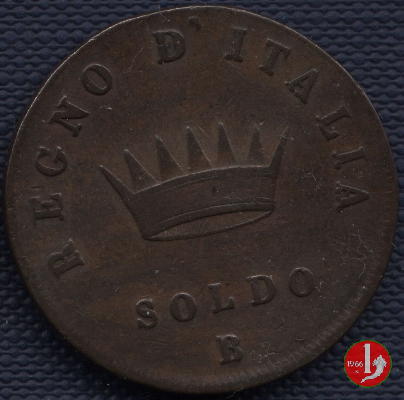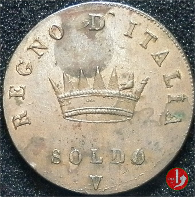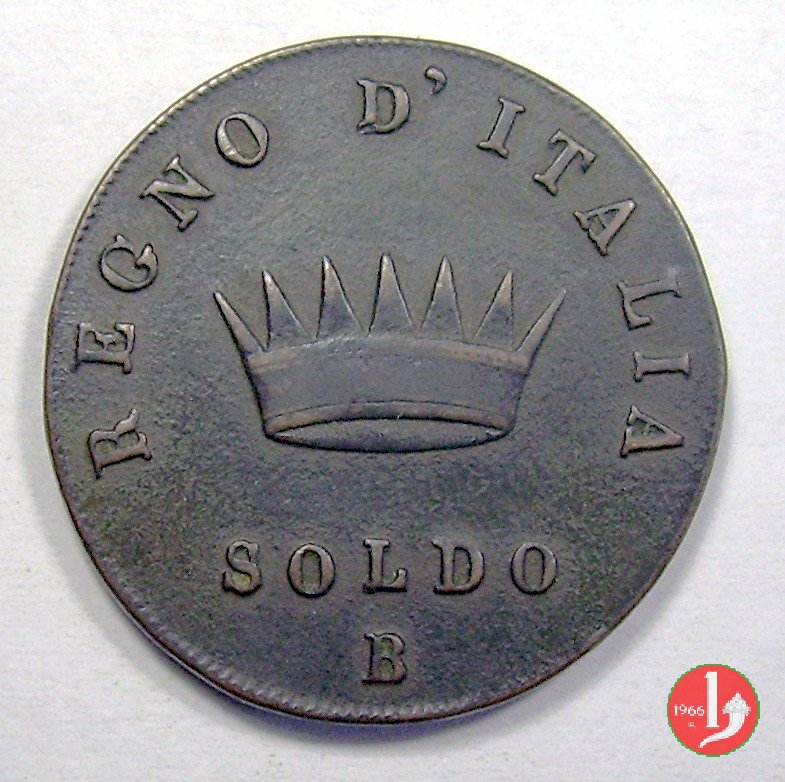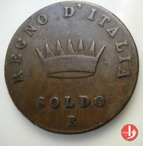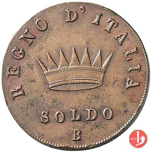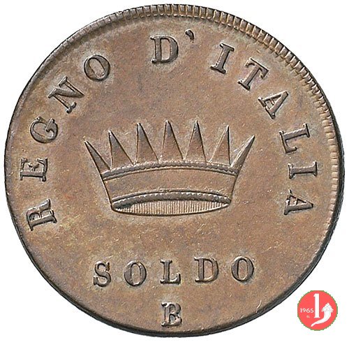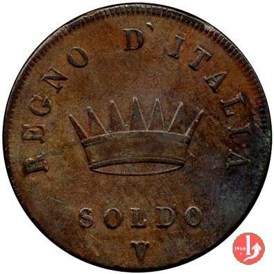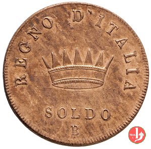 Moneta da 1 soldo ovvero 5 centesimi. Segno di Zecca per Bologna: B e ramoscello di quercia Segno di Zecca per Milano: M e melagrana Segno di Zecca per Venezia: V e un'ancora. | |||||||||||||