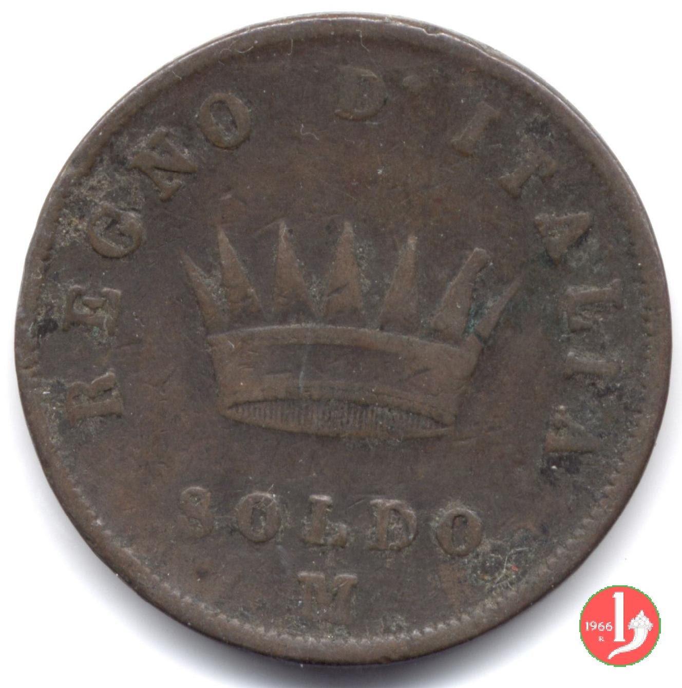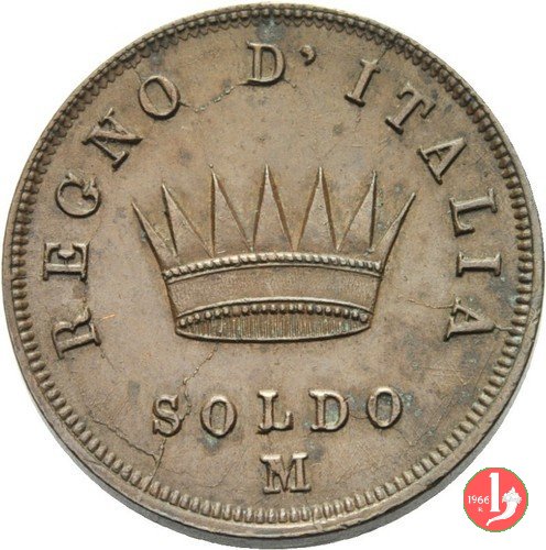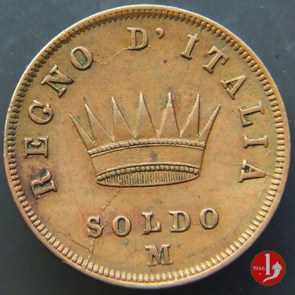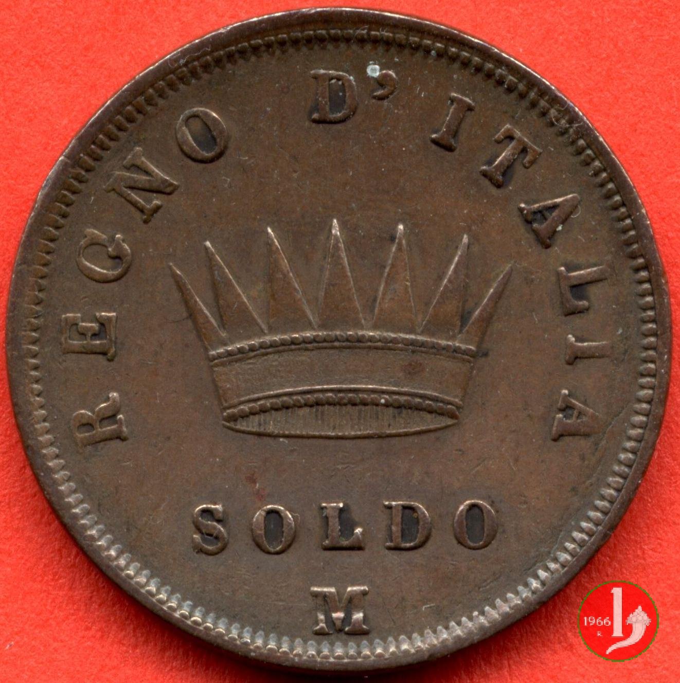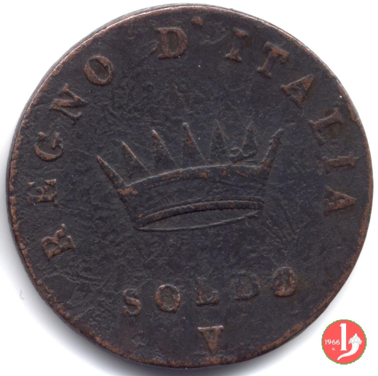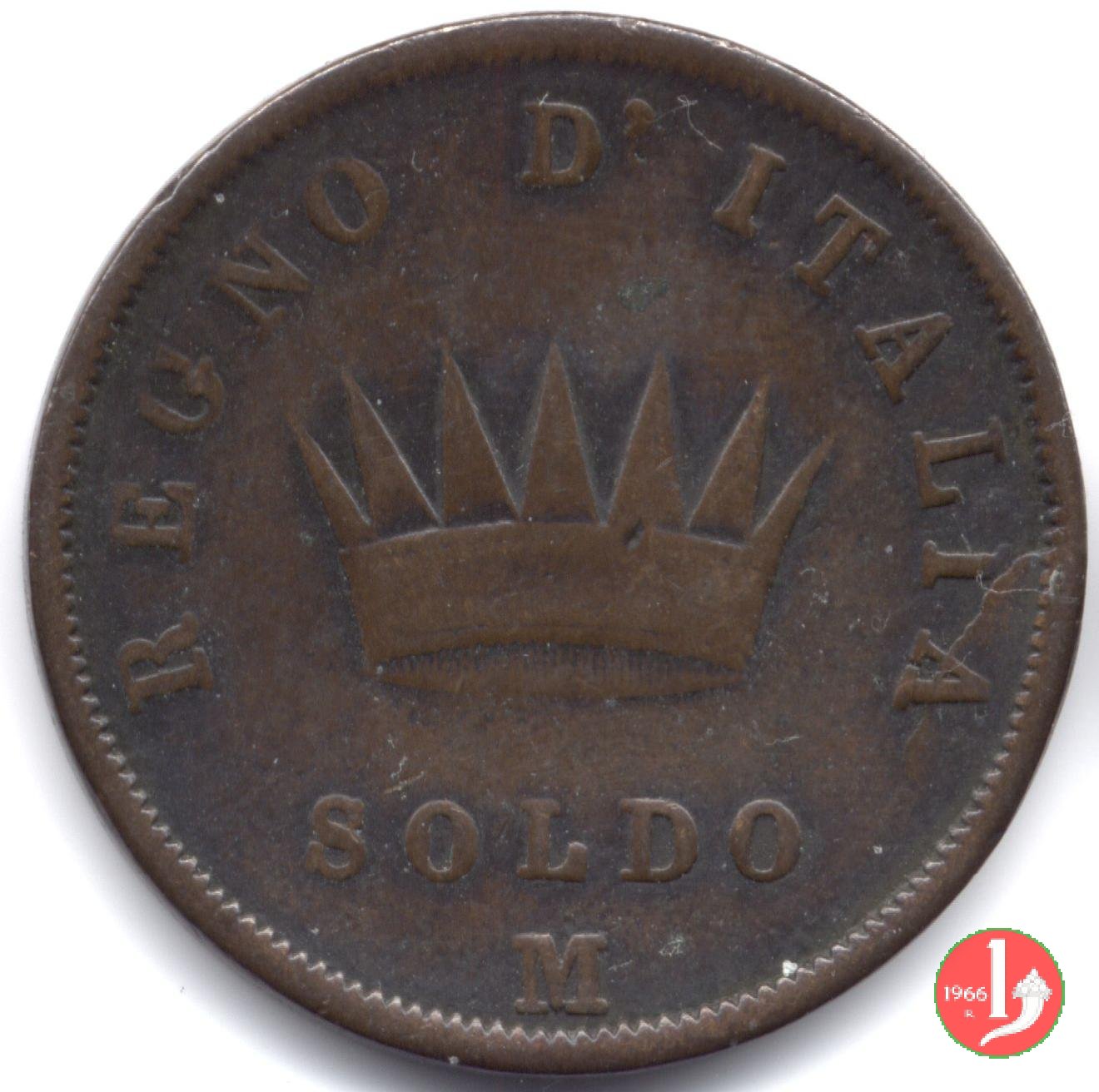Moneta da 1 soldo ovvero 5 centesimi. Segno di Zecca per Bologna: B e ramoscello di quercia Segno di Zecca per Milano: M e melagrana Segno di Zecca per Venezia: V e un'ancora. | |||||||||||||