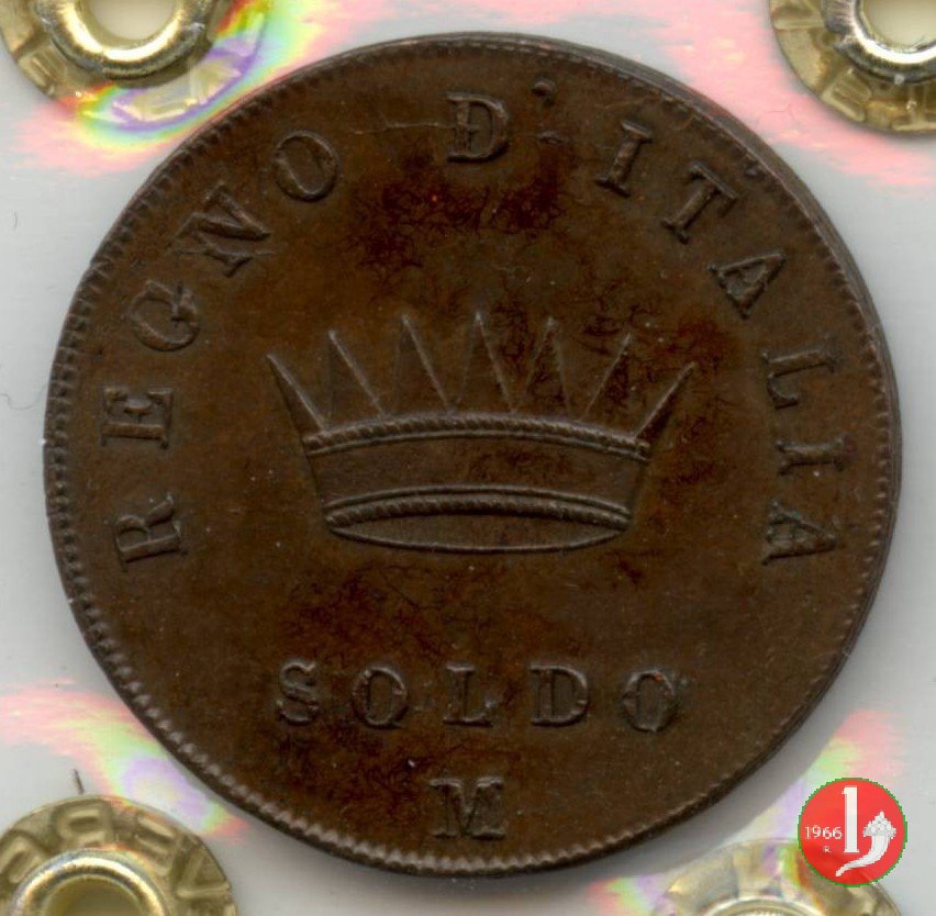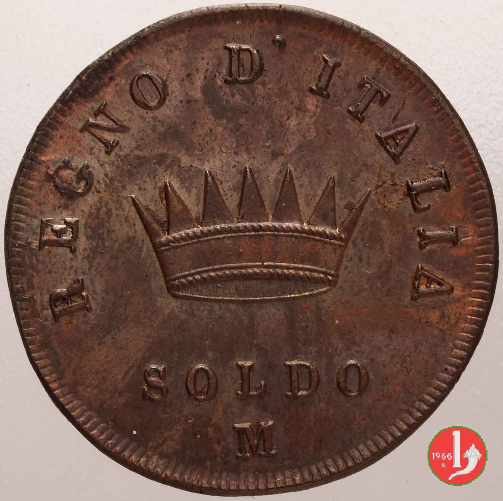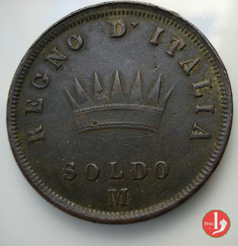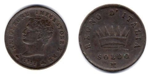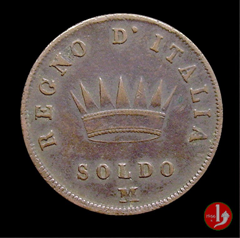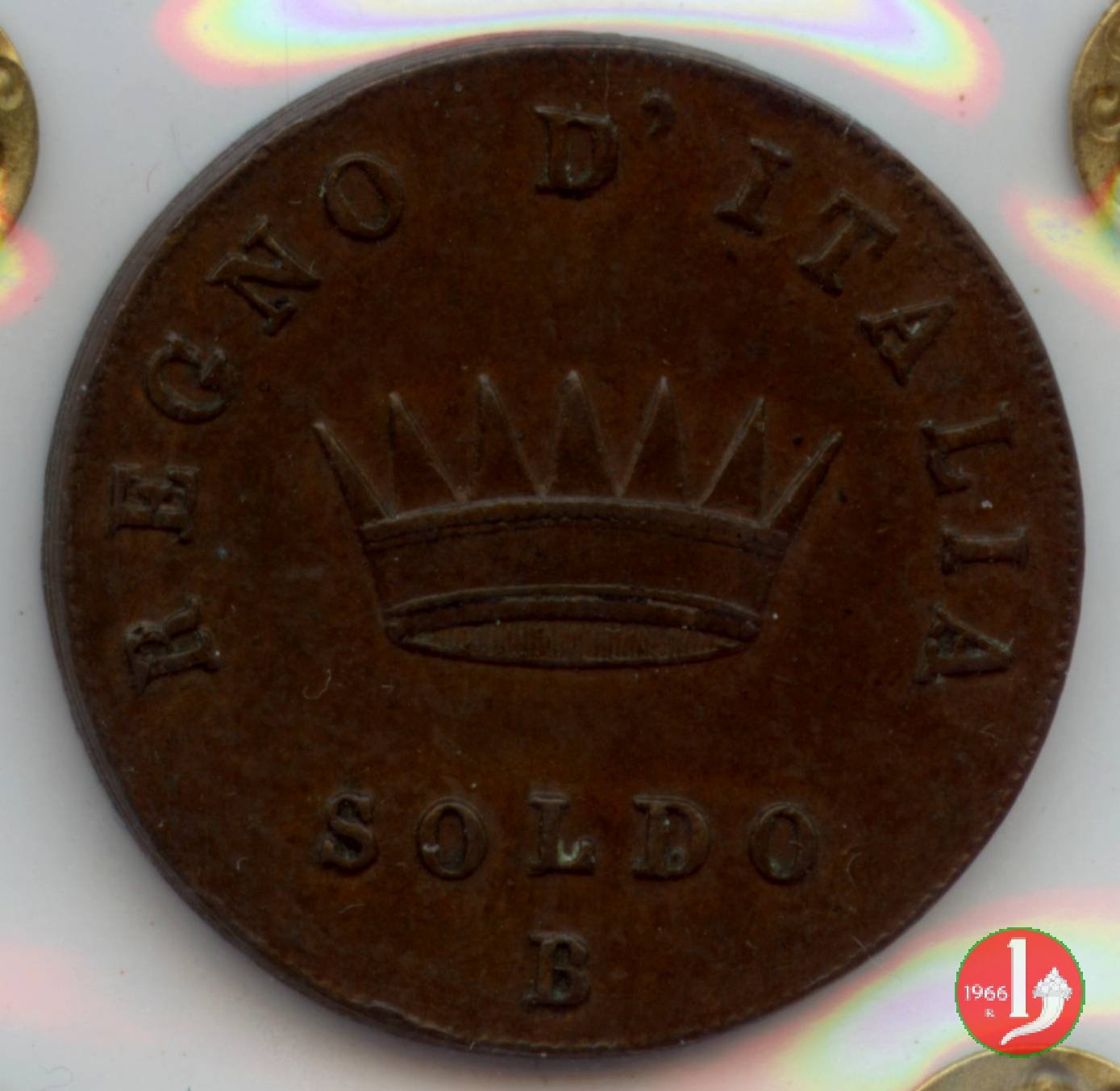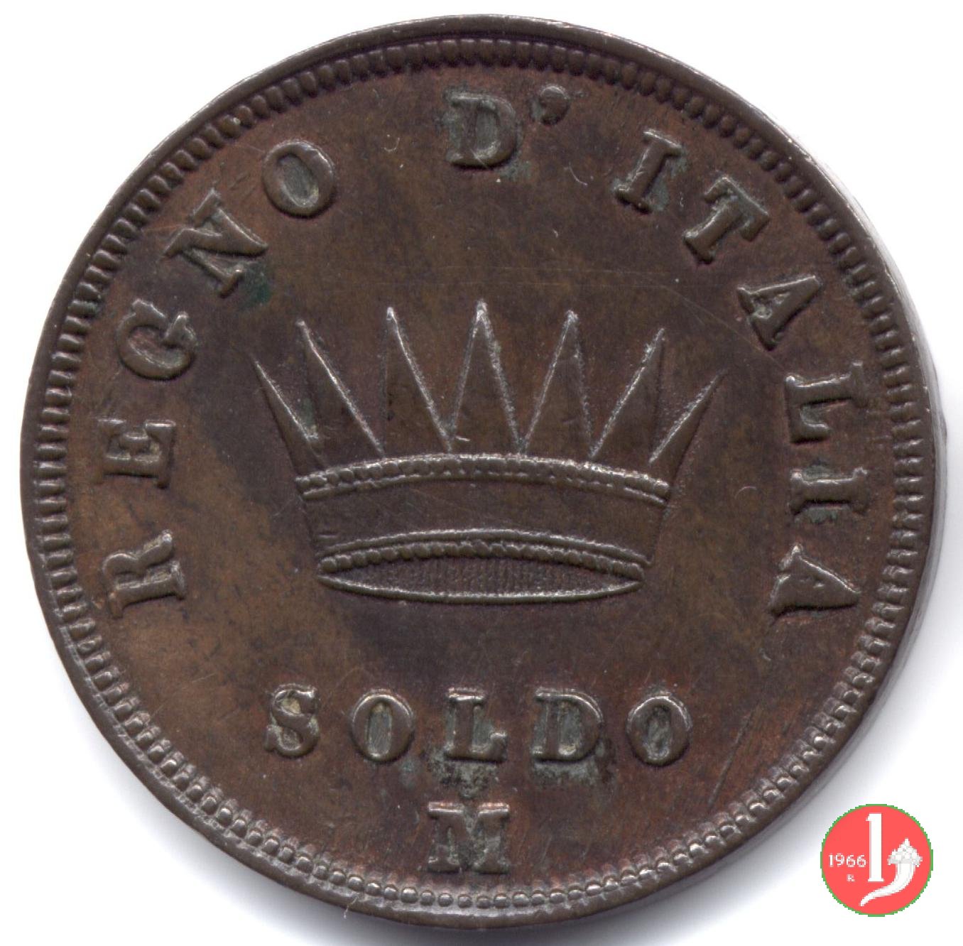 Moneta da 1 soldo ovvero 5 centesimi. Segno di Zecca per Bologna: B e ramoscello di quercia Segno di Zecca per Milano: M e melagrana Segno di Zecca per Venezia: V e un'ancora. | |||||||||||||