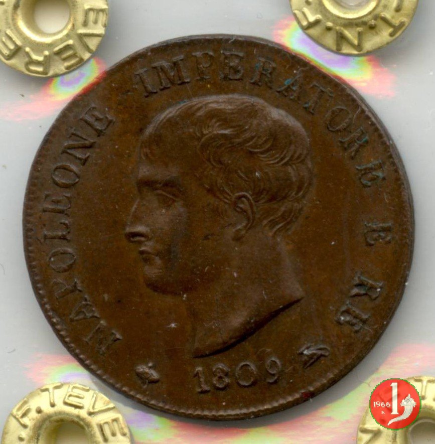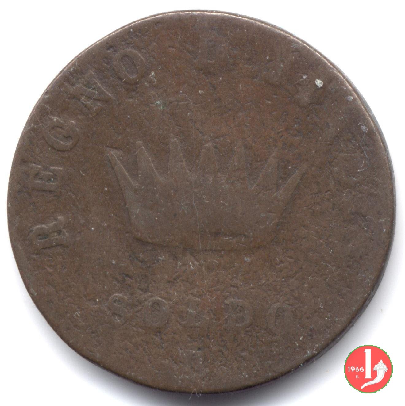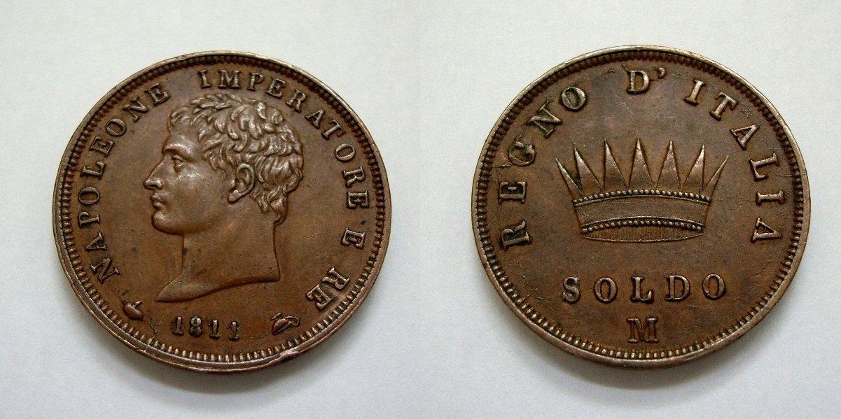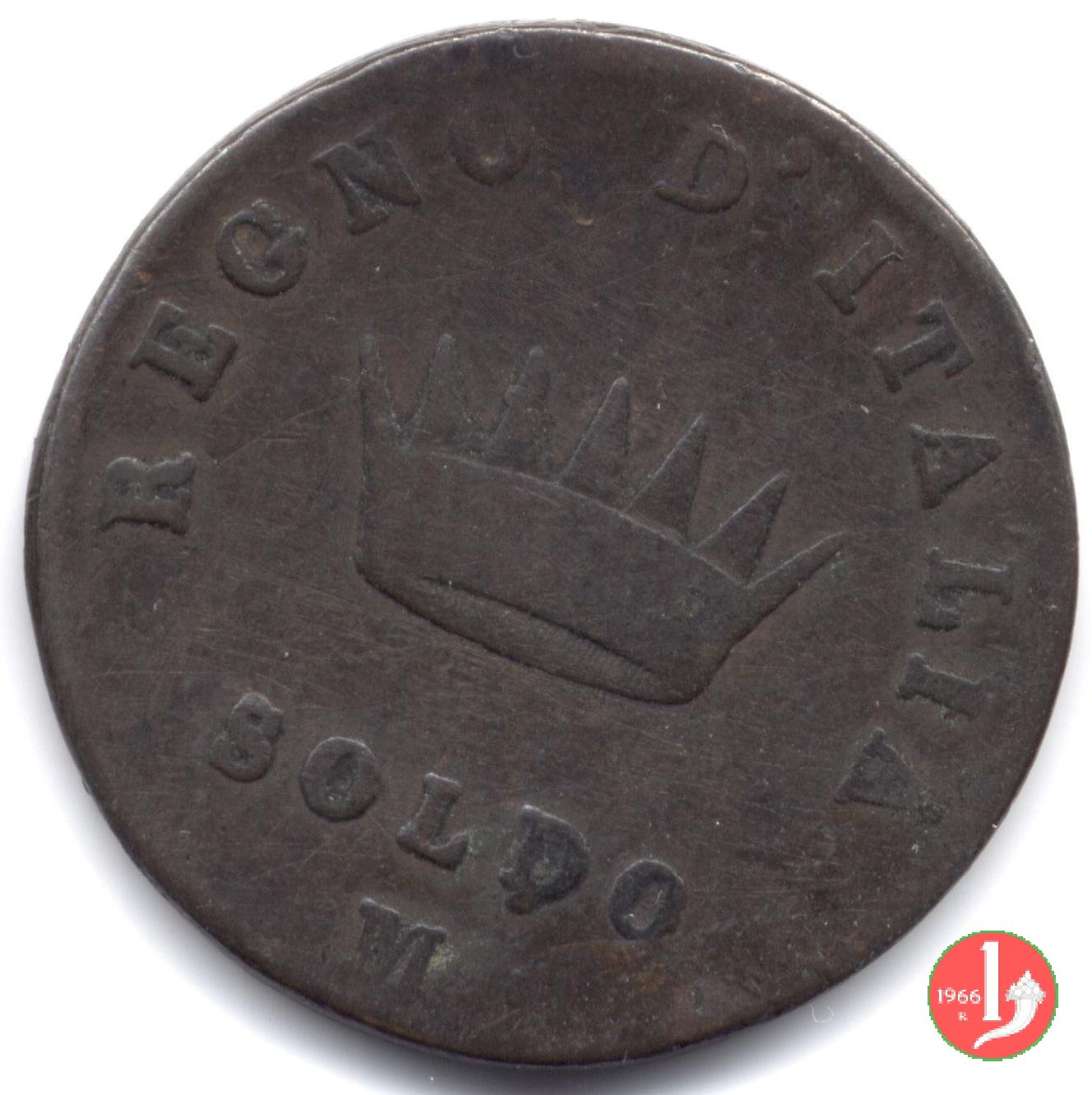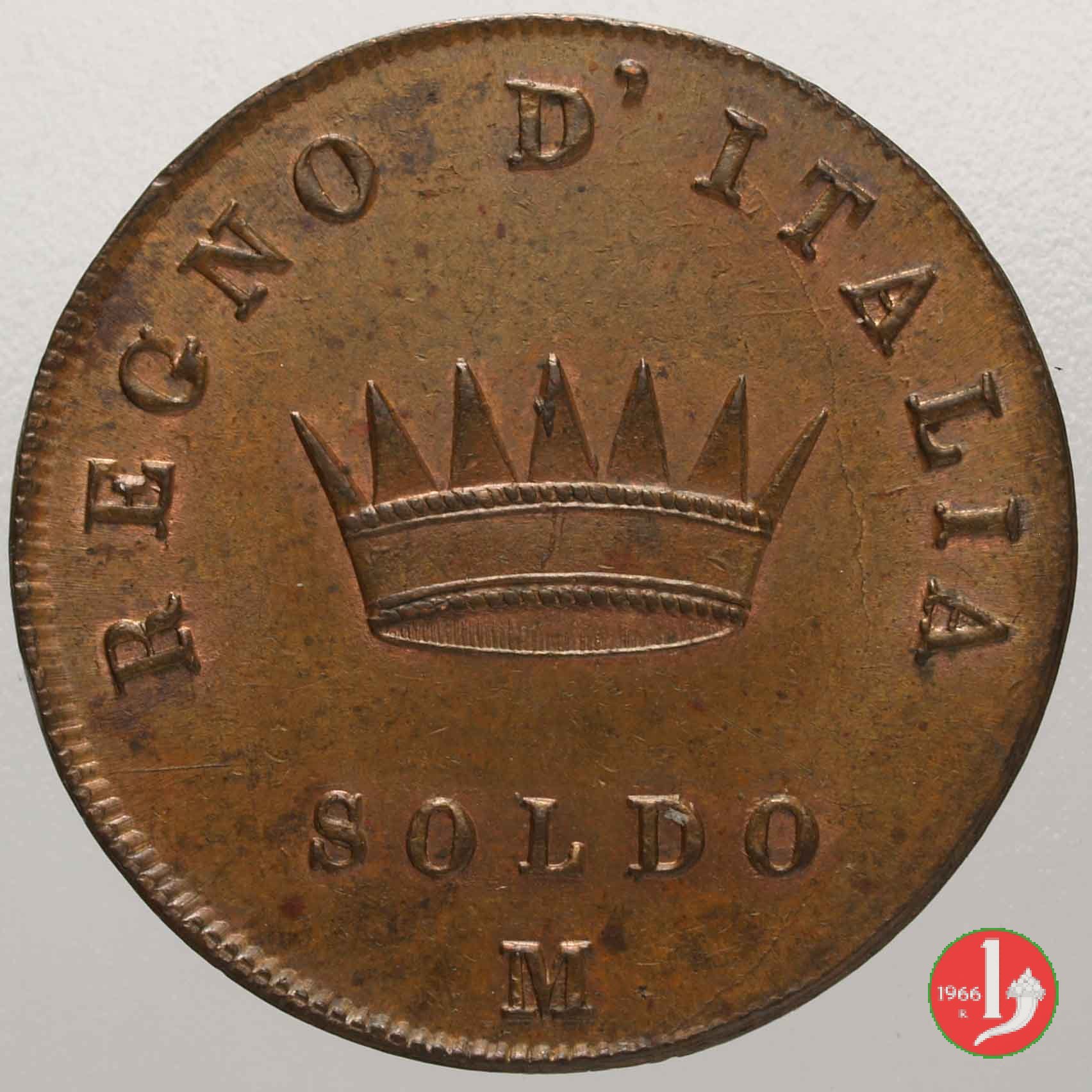 Moneta da 1 soldo ovvero 5 centesimi. Segno di Zecca per Bologna: B e ramoscello di quercia Segno di Zecca per Milano: M e melagrana Segno di Zecca per Venezia: V e un'ancora. | |||||||||||||