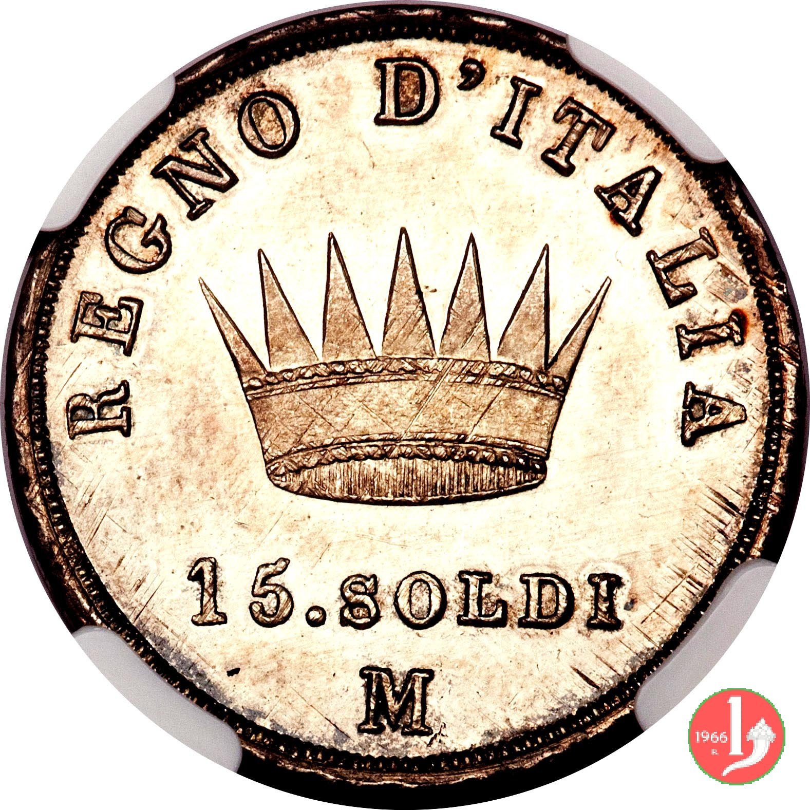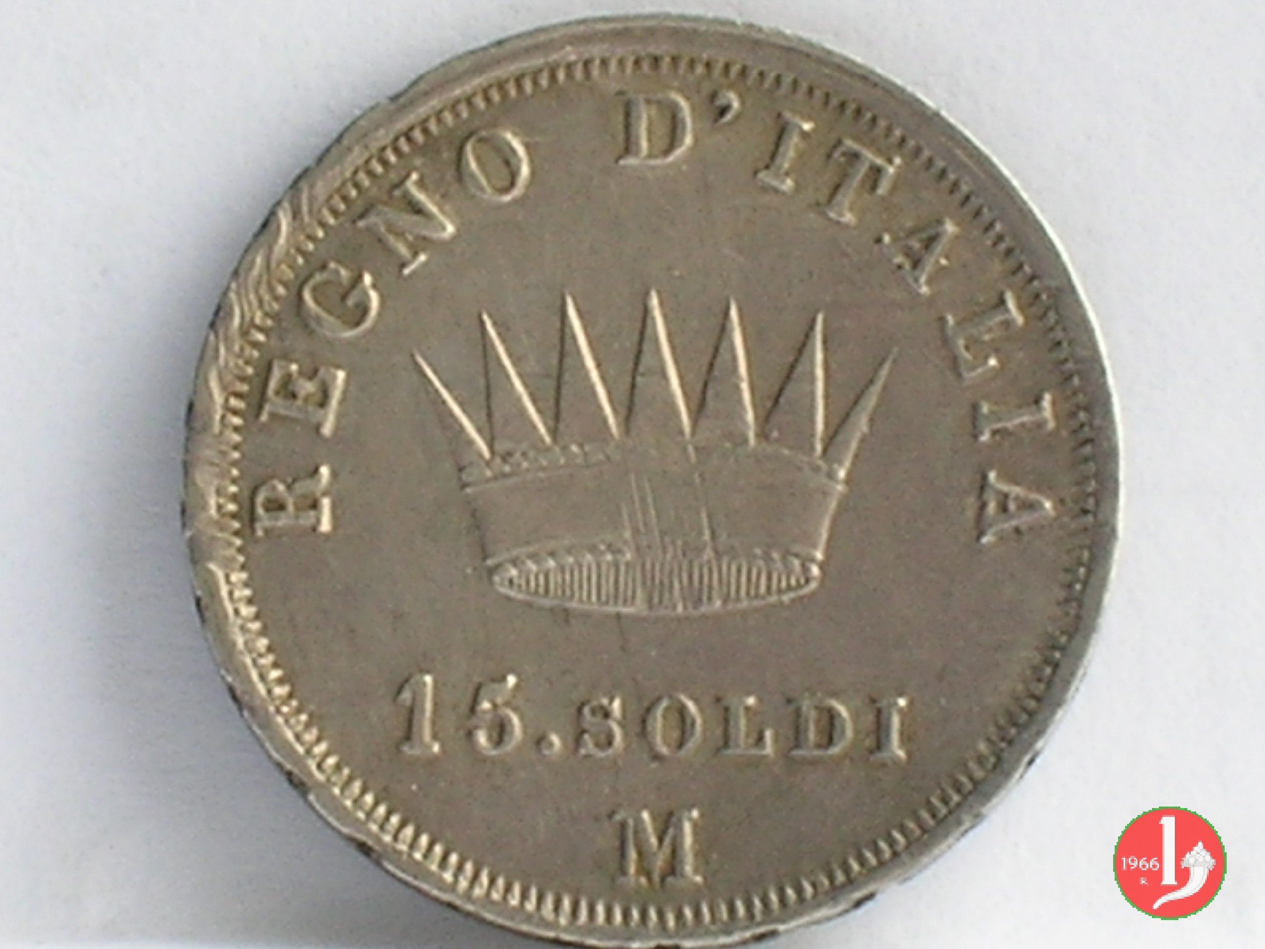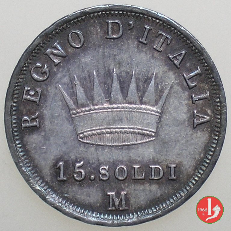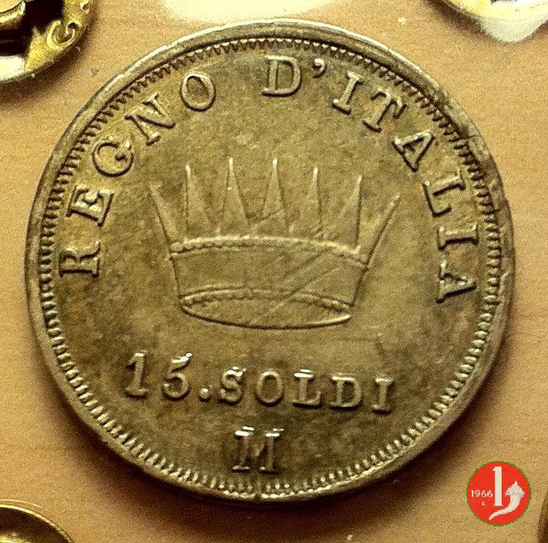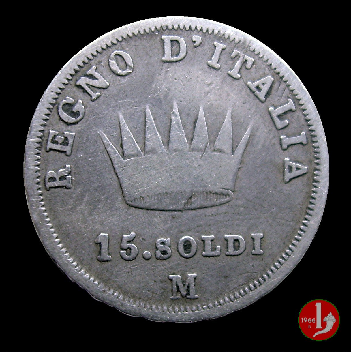 Moneta da 15 soldi ovvero 75 centesimi. Il Carboneri cita anche il 15 Soldi 1810, ad oggi i pochi esemplari comparsi sono tutti contraffatti nella data.