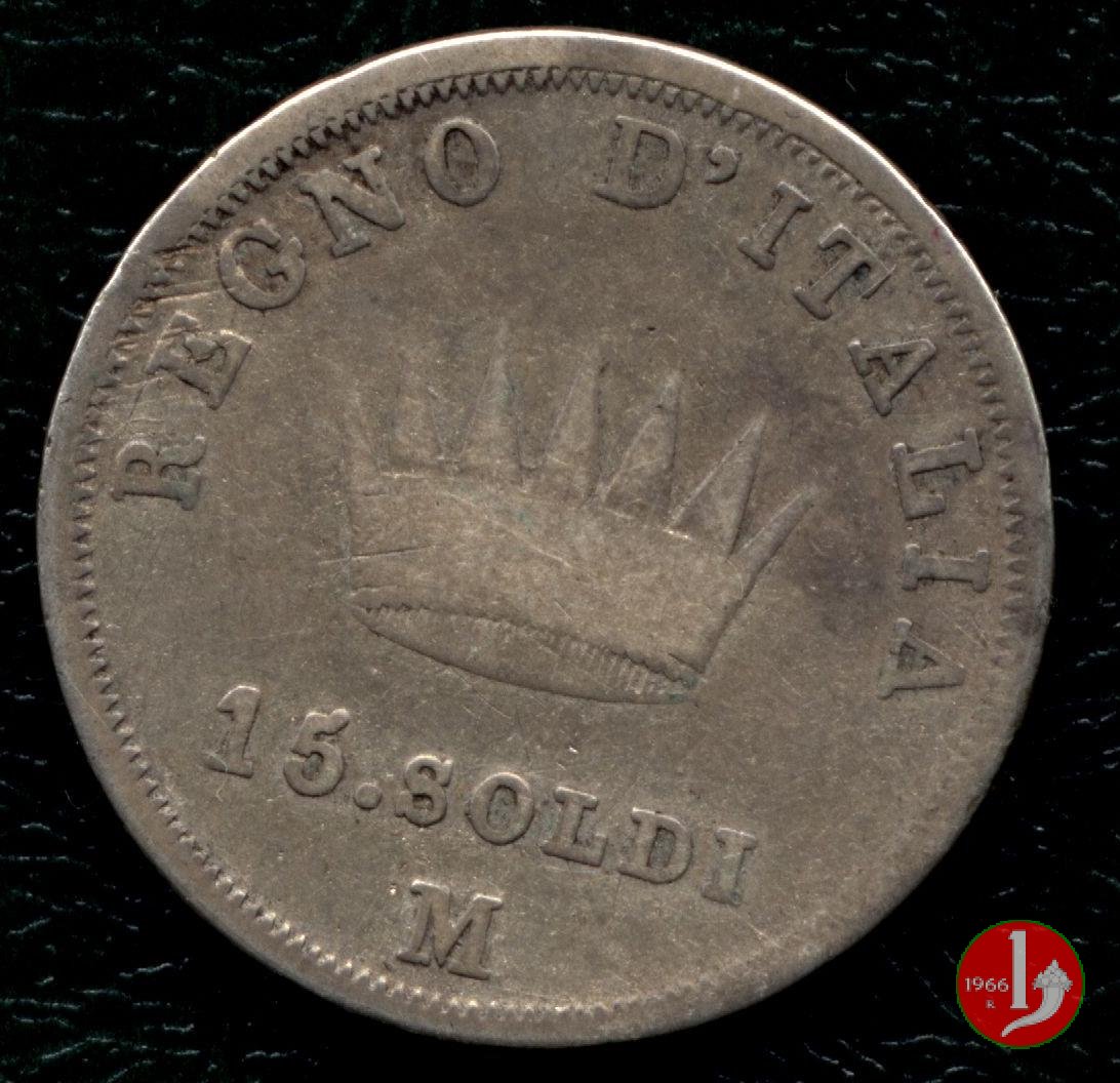 REGNO D'ITALIA, nel campo corona ferrea radiata (simbolo del Sacro Romano Impero) / 15.SOLDI / M