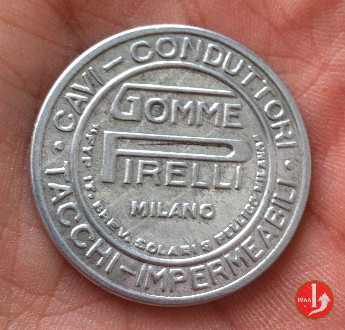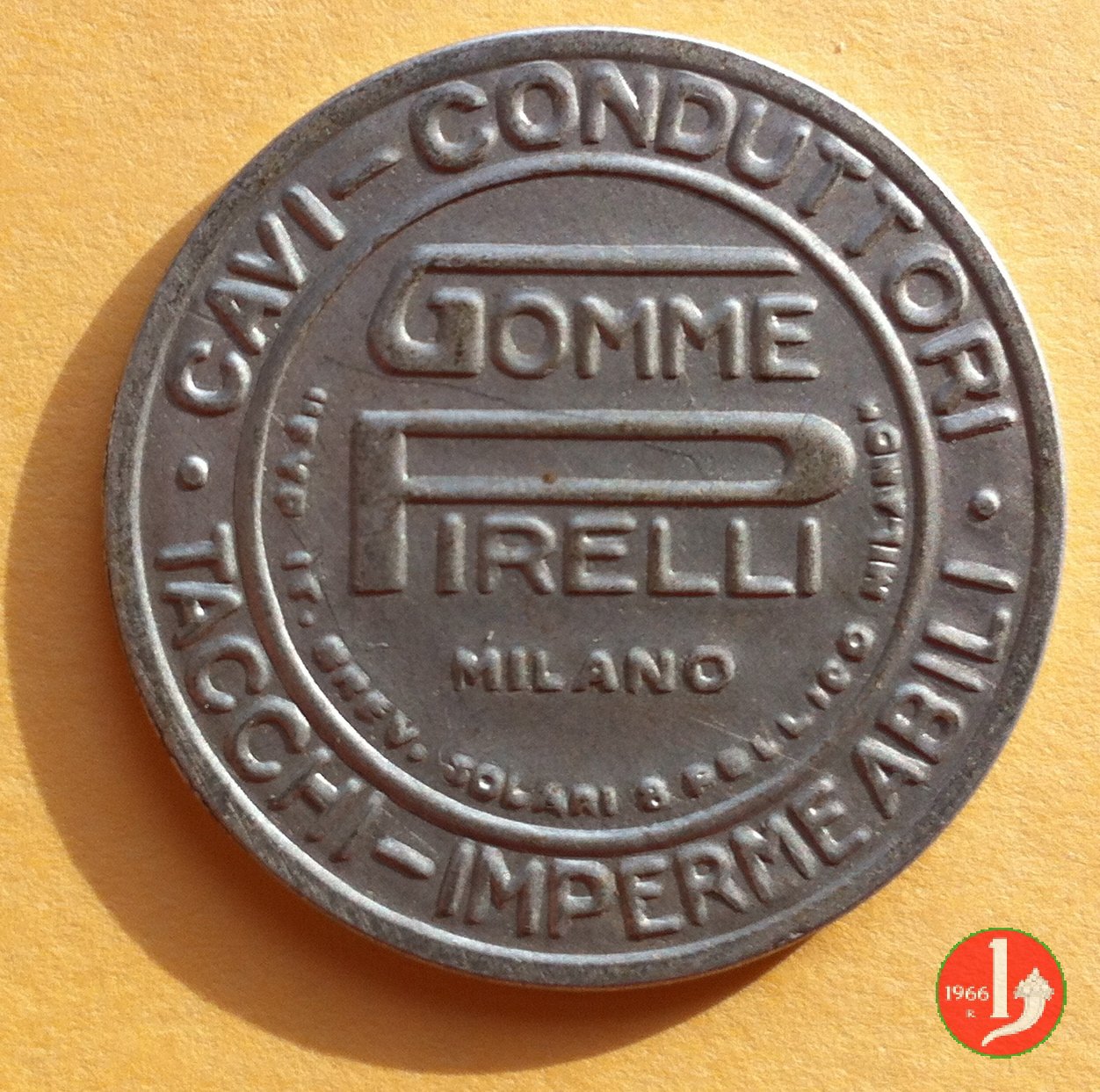 Al centro su due righe GOMME PIRELLI (stilizzato) MILANO