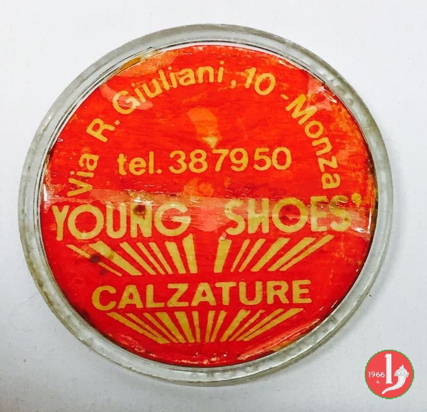 Marchio STUDIO PANIZZOLI - MILANO MOD. DEP. su plastica trasparente. Francobollo di vari valori serie siracusana. Pubblicità Young Shoes Calzature