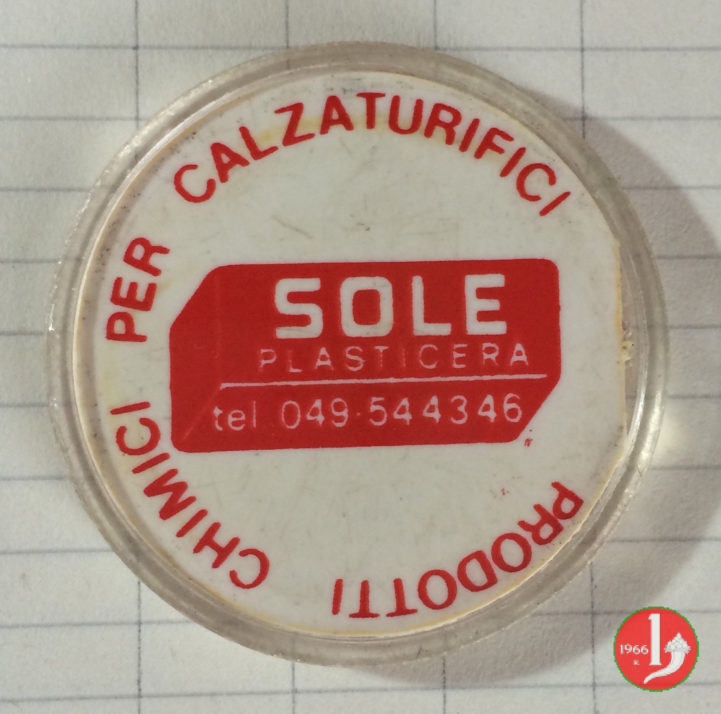 Marchio PUBLIRESTO MOD. DEP. su plastica trasparente. Francobollo di vari valori serie siracusana. Pubblicità Sole Plasticera