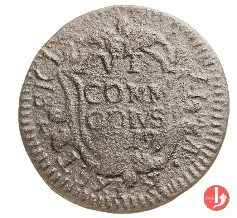 7 D\ • D • G • / HI / SP /(fiore) S ; sotto il nastro D.D.A e sopra C R\ ET SICIL / AE(fiore) / REX; VT / COMO / DIVS / 1719