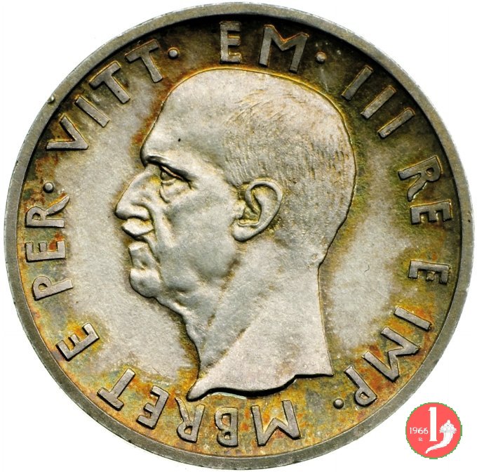 Testa del Re volta a sinistra. Intorno la scritta VITT • EM • III RE E IMP • MBRET E PER • Aquila bicipite albanese contornata da due fasci con le scuri verso l'esterno. Sotto il fascio di sinistra, il millesimo e il segno di zecca (R) su due righe, sotto quello di destra, l'anno dell'Era Fascista. Ai lati della coda dell'aquila, indicazione del valore (5 LEK). Lungo il bordo, in alto SHQIPNI, in basso ALBANIA. Da ore 7 a ore 8 lungo il bordo, indicazione dell'autore (G. ROMAGNOLI). A sinistra, circolarmente, "PROVA".