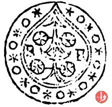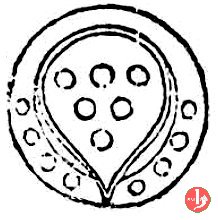 Carro, ai lati F - F, entro cornice a goccia. Attorno, pallini e rosette. Sei circoletti disposti a triangolo entro cornice a goccia che oltrepassa un circolo. Ai lati dell'apice della cornice otto circoletti.