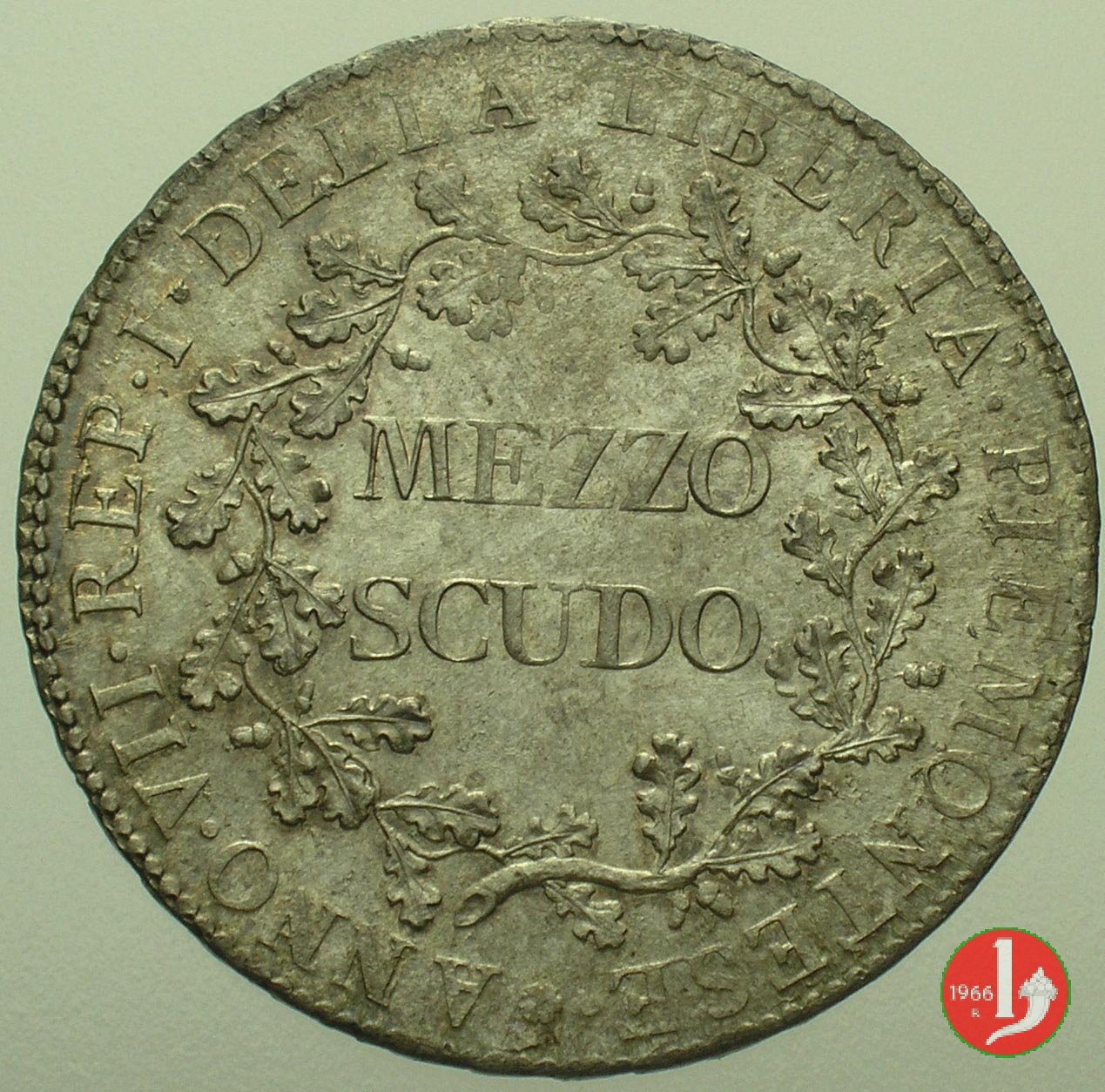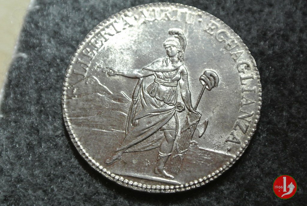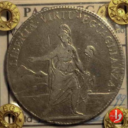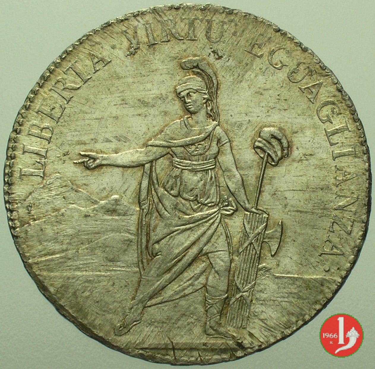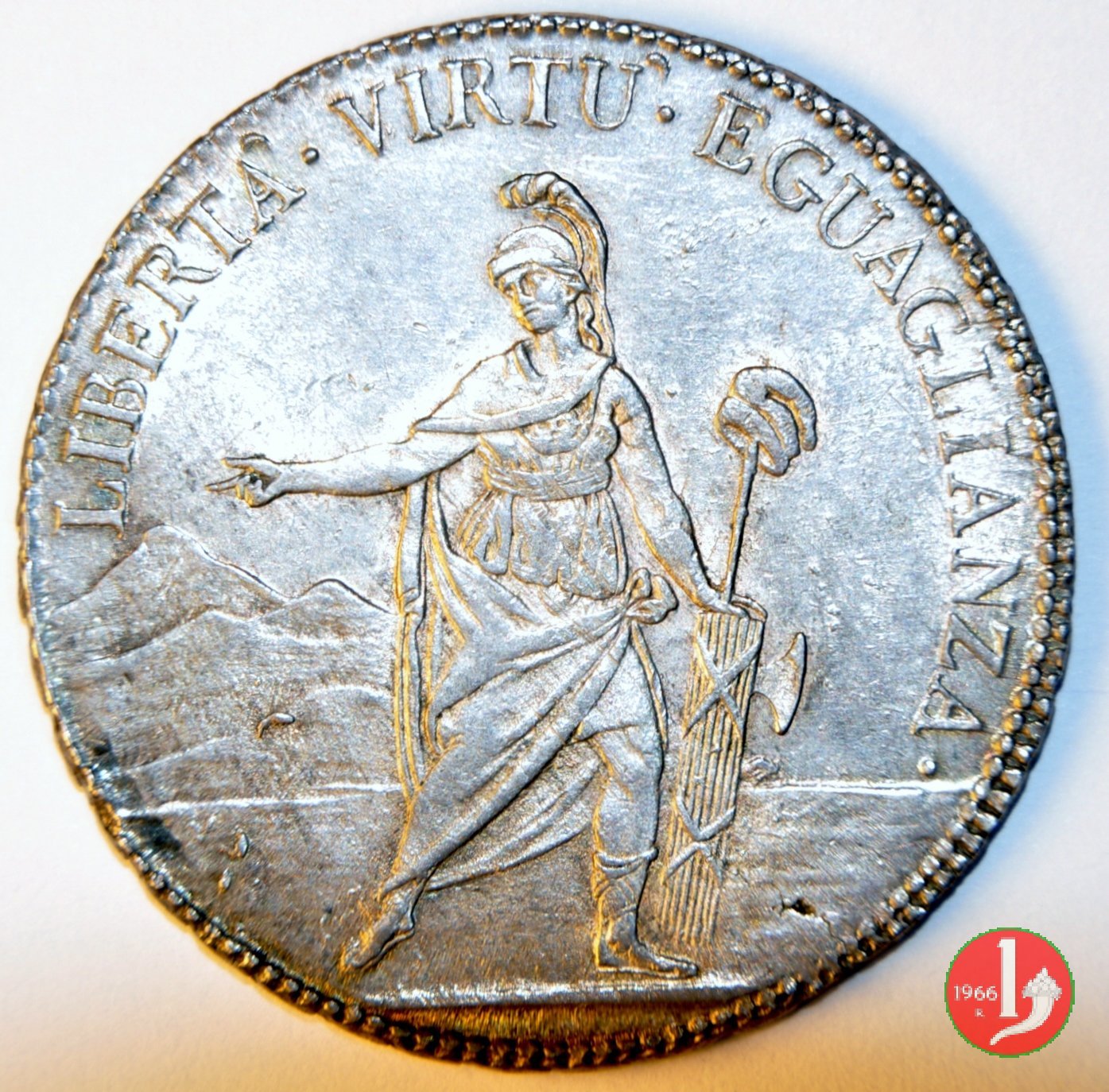 in quanto considerabile come prima moneta Italiana dell'Era Contemporanea. La data VII riportata sulla moneta è riferita al calendario Repubblicano francese che ebbe inizio il 22.IX.1792, ed abolito da Napoleone l 1.I.1806. La coniazione dovrebbe essere di circa 450.000 pezzi compresa la variante firmata da A. Lavy (incisore dei conii). | |||||||||||