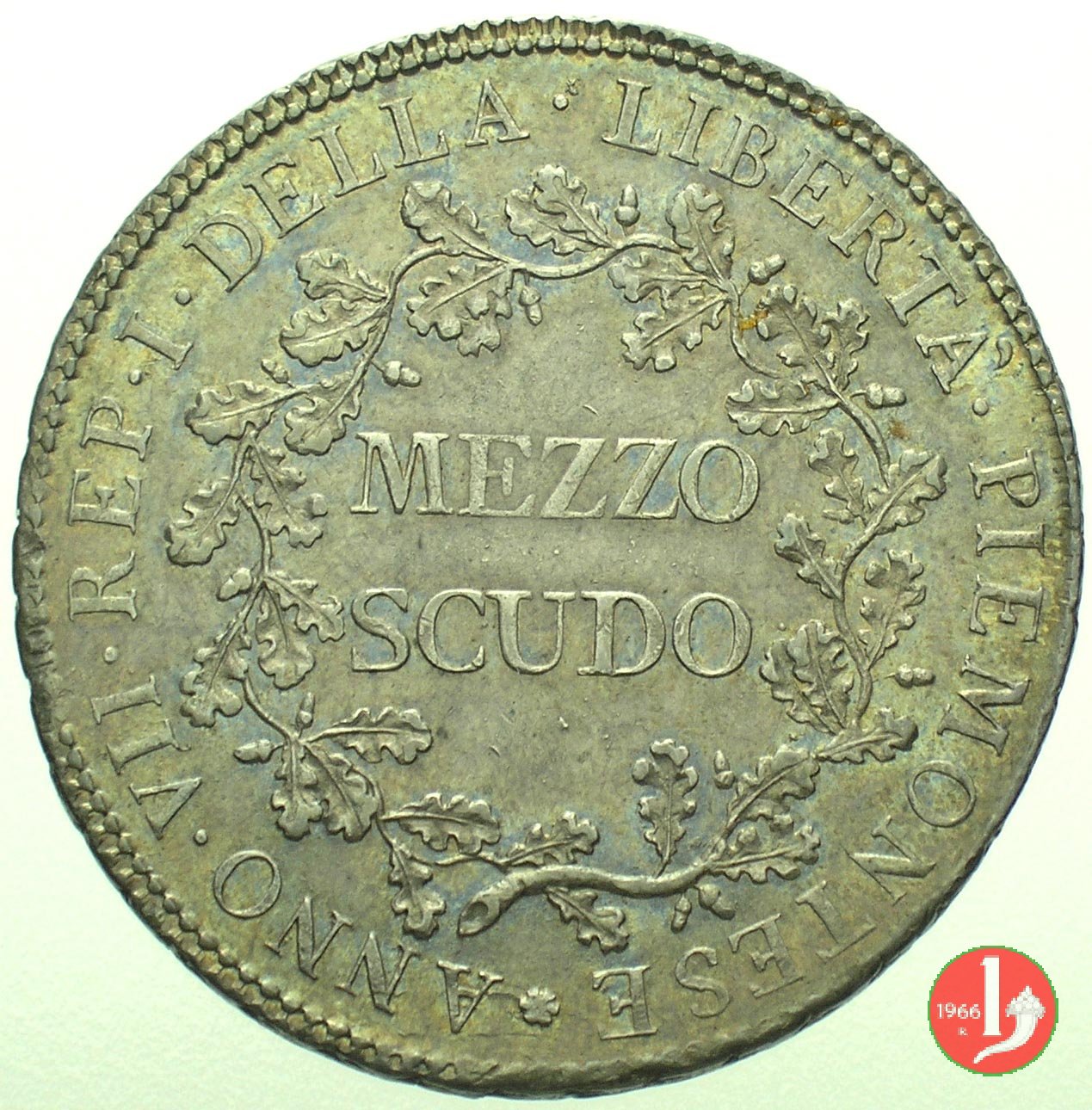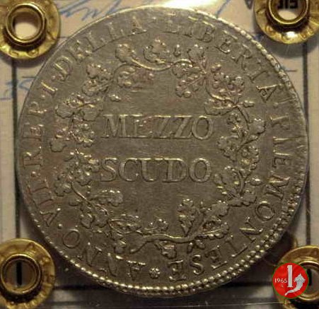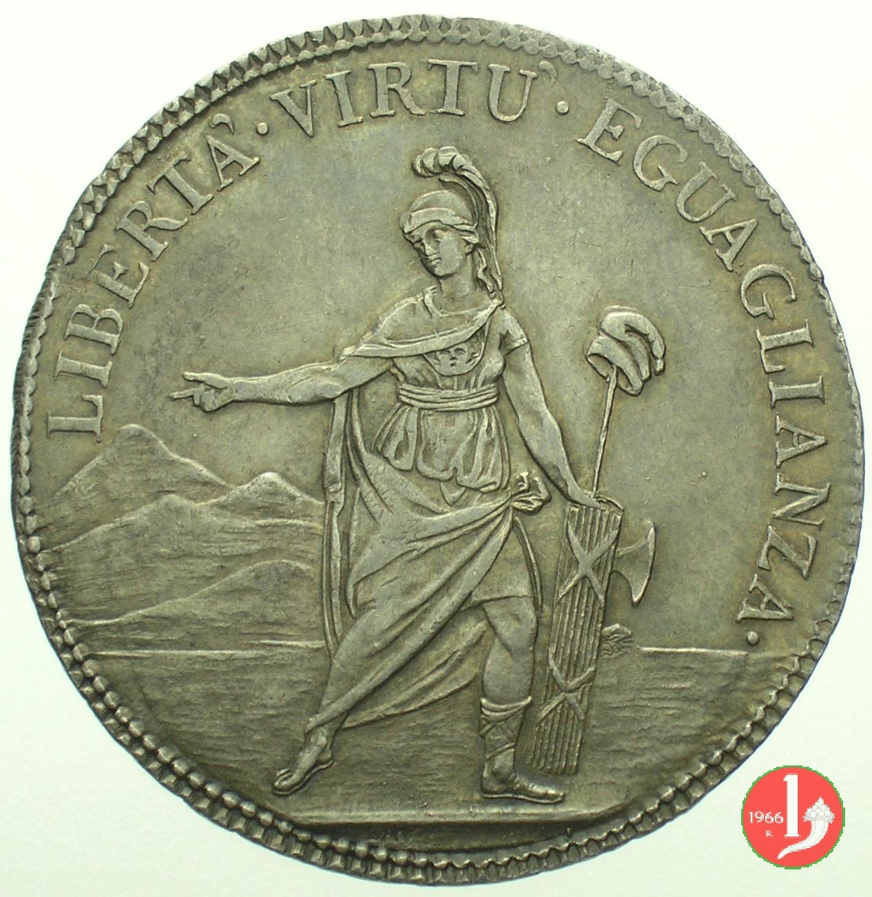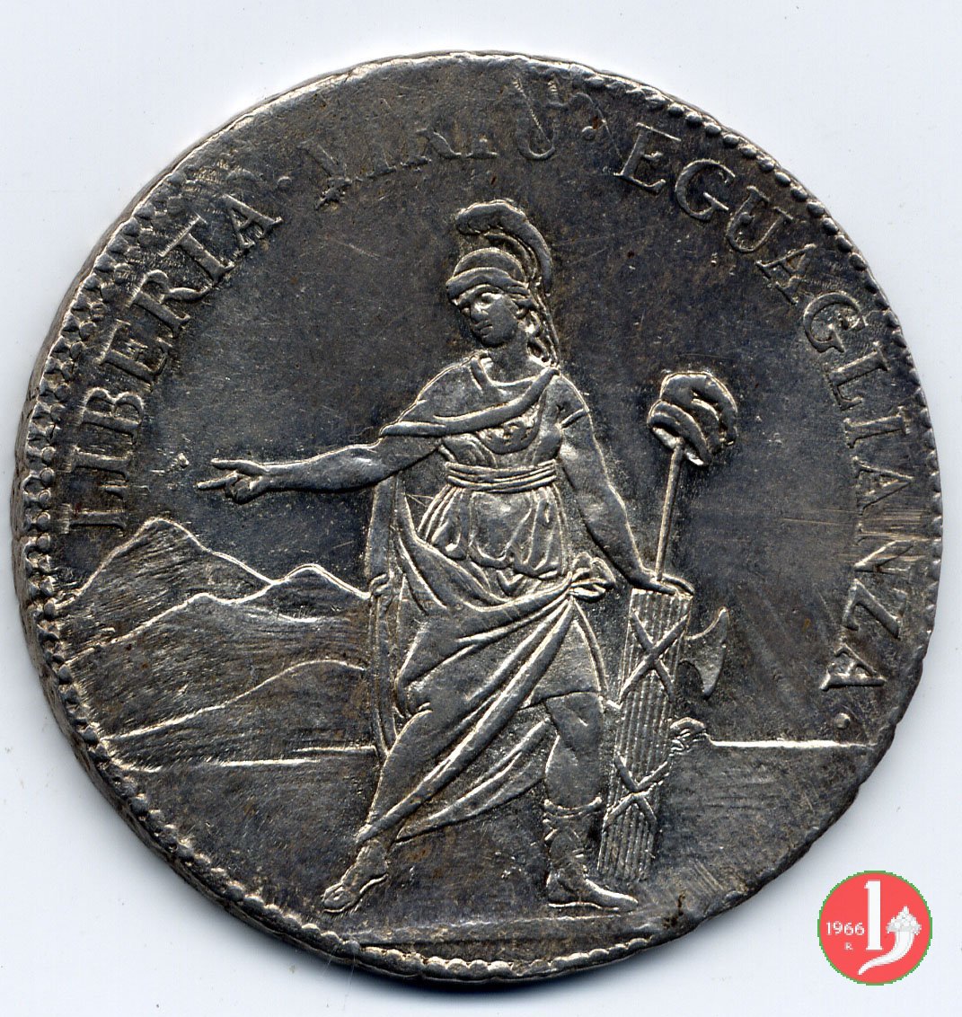 in quanto considerabile come prima moneta Italiana dell'Era Contemporanea. La data VII riportata sulla moneta è riferita al calendario Repubblicano francese che ebbe inizio il 22.IX.1792, ed abolito da Napoleone l 1.I.1806. La coniazione dovrebbe essere di circa 450.000 pezzi compresa la variante firmata da A. Lavy (incisore dei conii). | |||||||||||