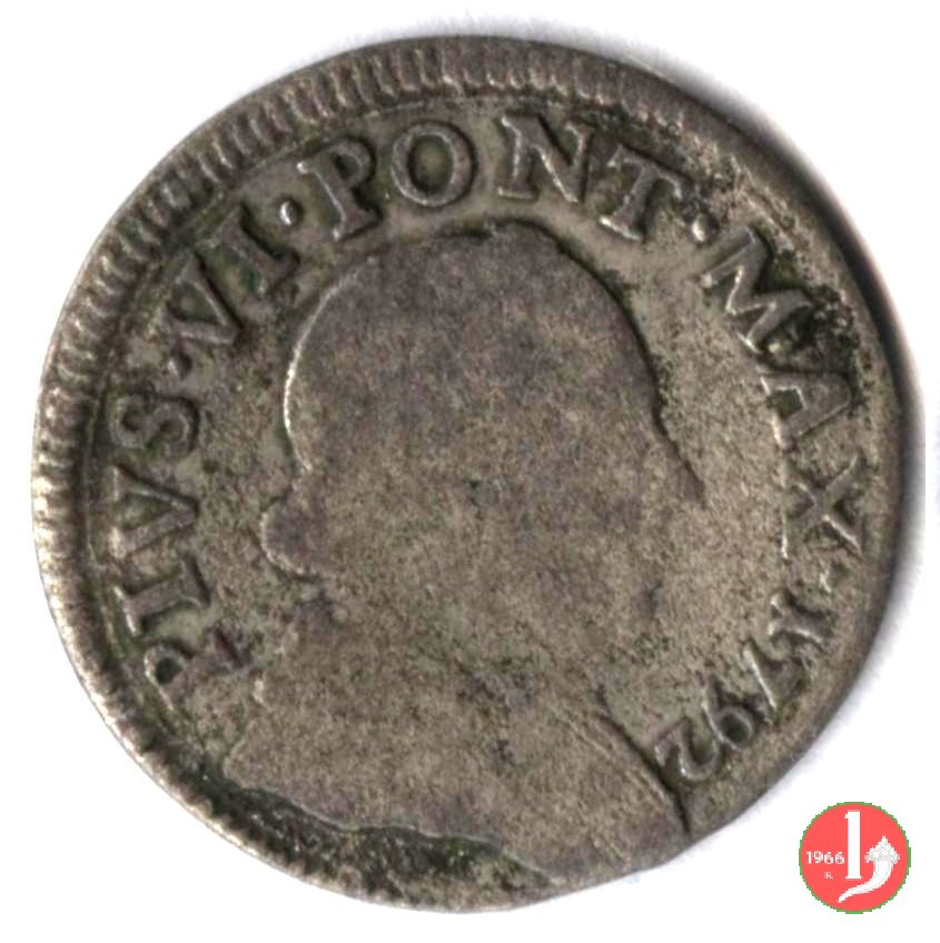 Dritto: busto a destra con berrettino; (s) PIVS • VI • PONT • MAX • 1790 * // Rovescio: figura del santo come 1778 ; (s) S • PETRON • - B • - PROT • // (Muntoni 240) |