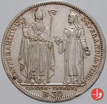 Questa moneta vuole commemorare i patroni di Cingoli, città natale di Pio VIII. Presenta spesso il conio decentrato.