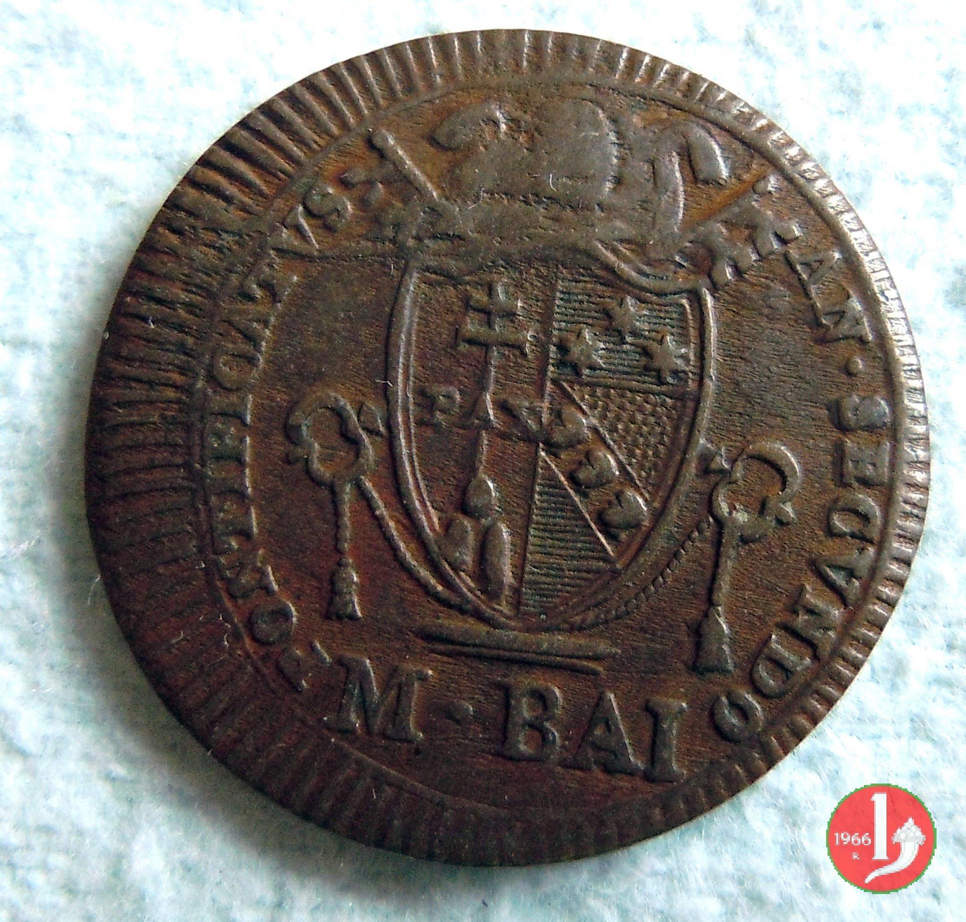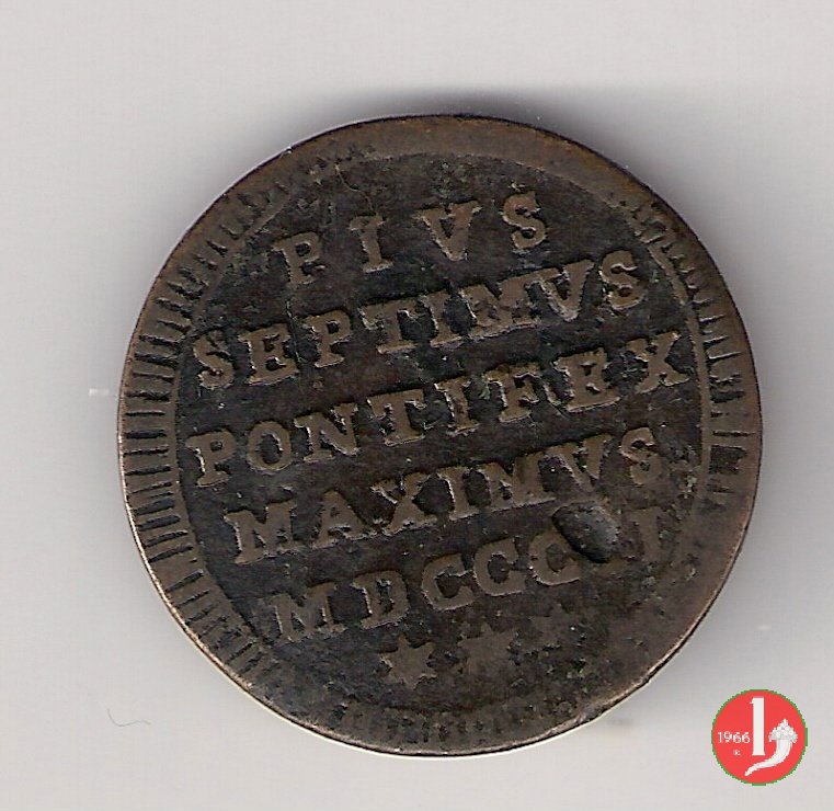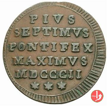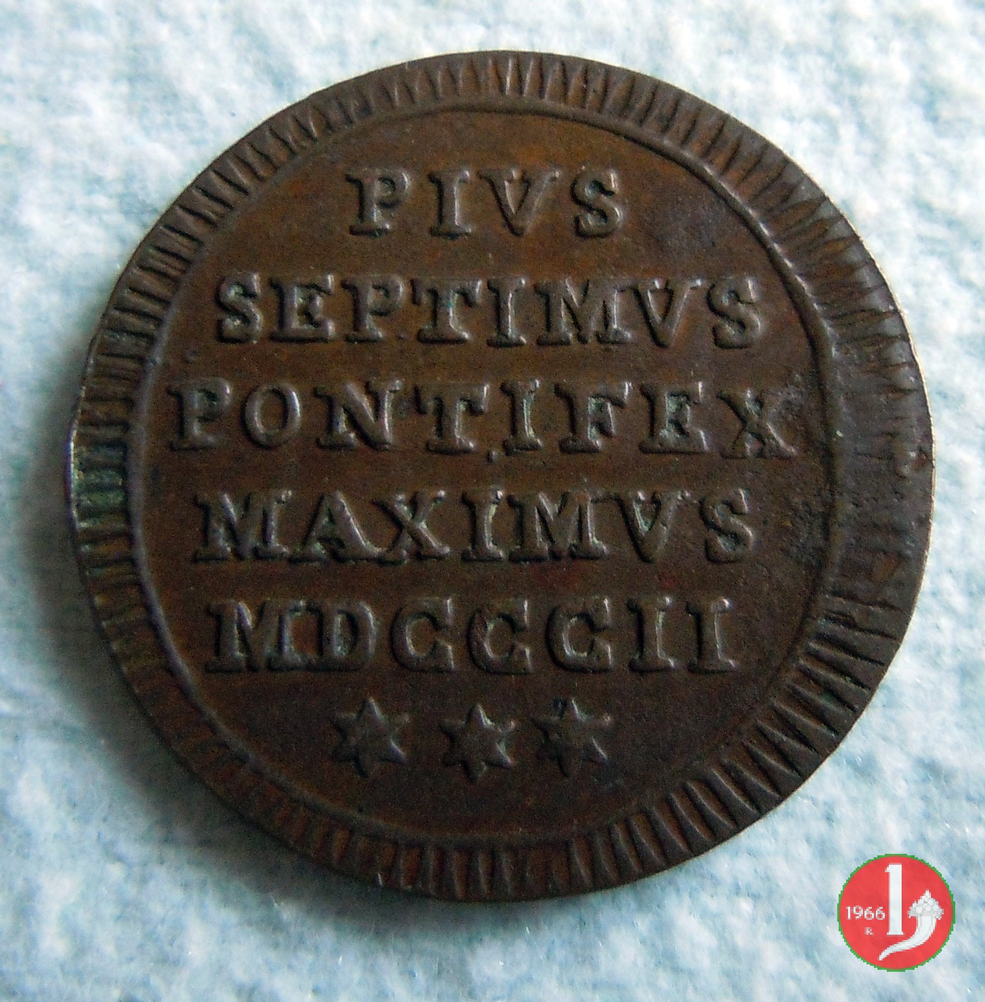 There are discussions about this coin on the forum: 1/2 Baiocco Pio VII, 1802, ROMA Statistica varianti di conio.