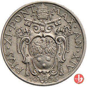 Stemma del Pontefice con intorno: Pivs • XI • PONT • MAX • AN • (anno di pontificato) In esergo il millesimo. Busto di San Pietro con intorno: Stato della città del vaticano. In basso a sinistra il valore nominale