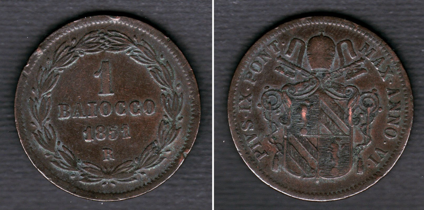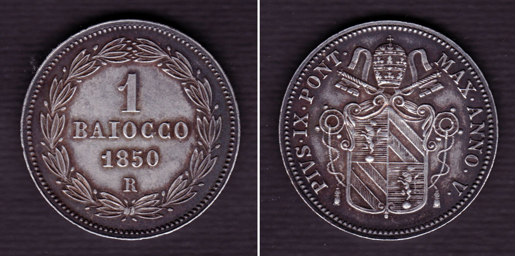Parlano di questa moneta sul forum in: Baiocco PIO IX 1850 R Anno V, Possibile in argento?.