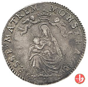 Stemma di Ranuccio II sormontato da corona ducale, intorno RANVT • FAR • PAR • ET • PLA • DVX • VI. Figura della Madonna che allatta incoronata da due cherubini in volo. Intorno MONSTRA • TE ESSE • MATREM •. In esergo monogramma dell'incisore ET.