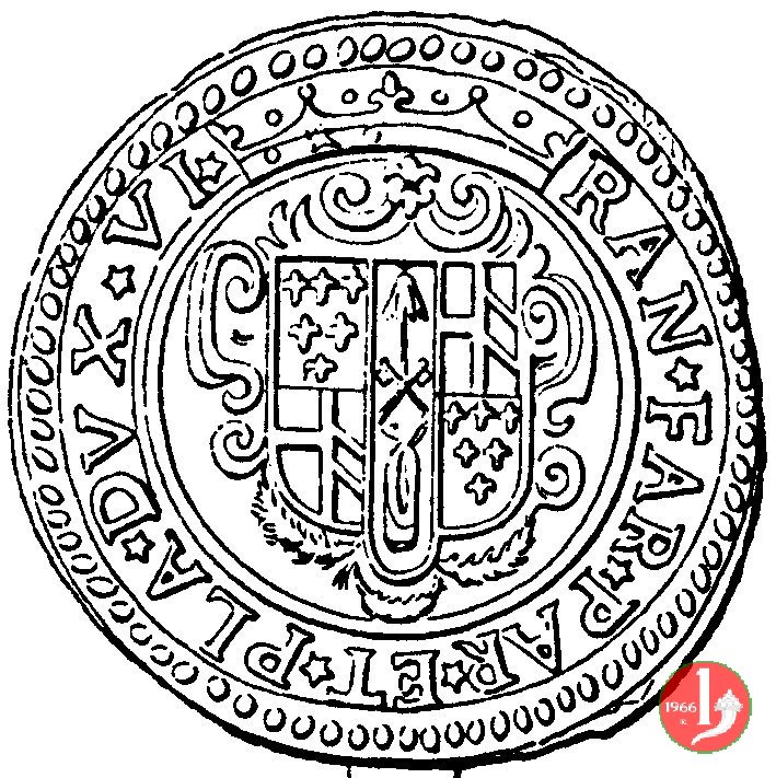 Il conio fu lavorato a Piacenza il valore era di 3 lire e 10 soldi (bontà once 9 e denari 18). Il Lopez ipotizza che la simbologia di questa moneta faccia riferimento alla spedizione di 3000 soldati parmigiani in soccorso della Serenissima contro i turchi (1654). L'unicorno quindi rappresenterebbe la potenza del Duca (già con Pier Luigi Farnese si trova utilizzato l'unicorno come simbolo di casa Farnese presumibilmente da Giulia Farnese) che scaccia i turchi (i serpenti). La stessa scritta potrebbe alludere che la spedizione avrebbe giovato sia al duca (SIBI) che ai veneziani (ALIIS). È comunque questa l'ultima moneta uscita dalla zecca di Parma in cui si ritrova l'unicorno. | ||||||||