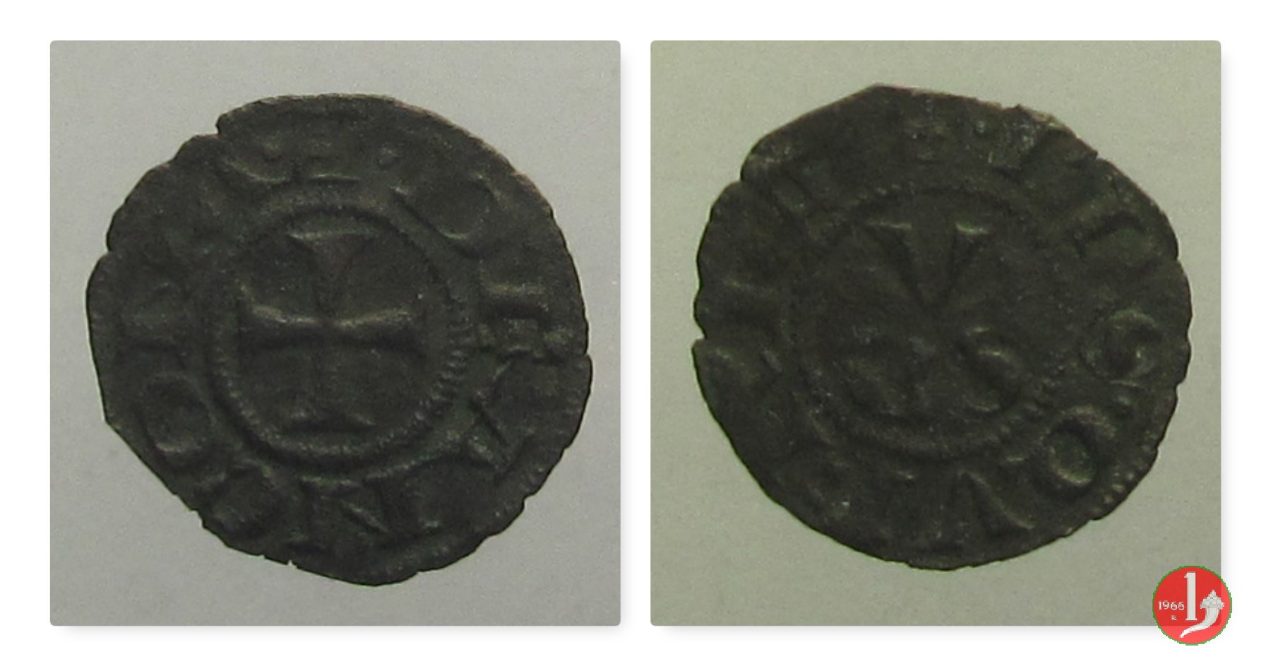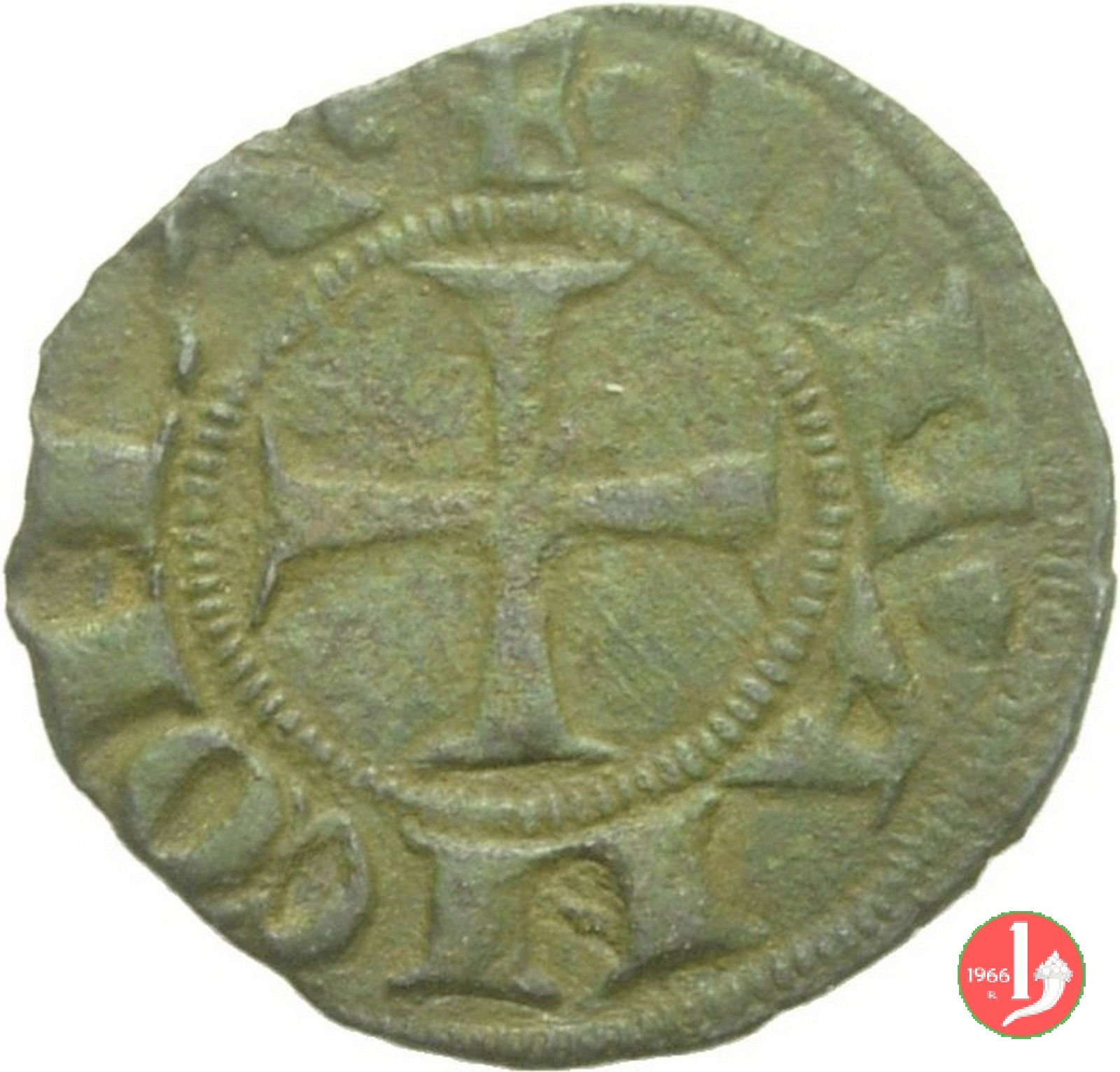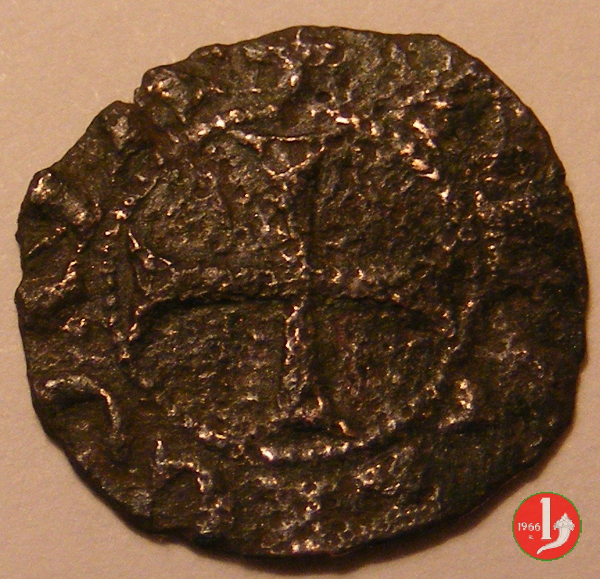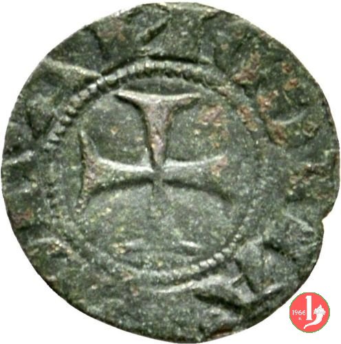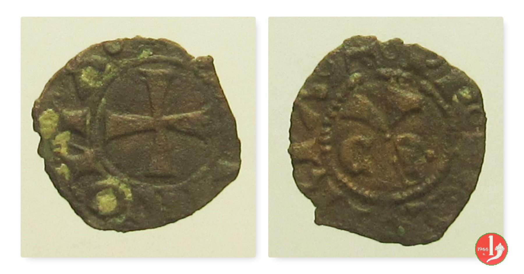 XIV Secolo. I Denari di questo periodo sono stati divisi in 4 tipi principali secondo la peculiarità del Dritto: + 1° t.: croce patente - + 2° t.: croce unghiata - + 3° t.: cavaliere a destra - + 4° t.: lettera A -
