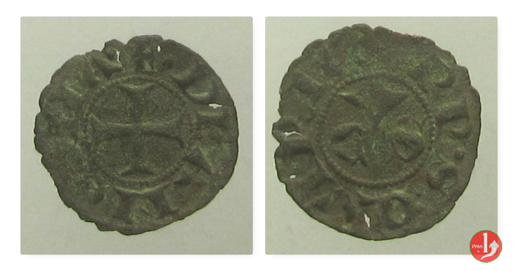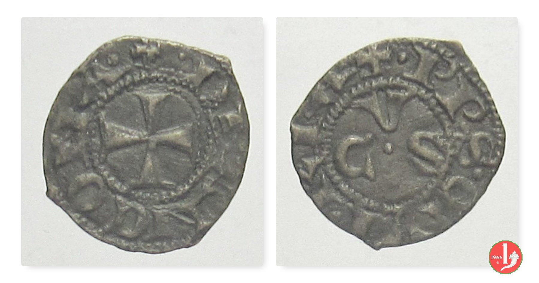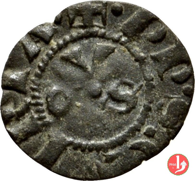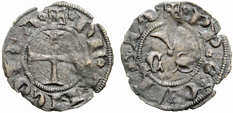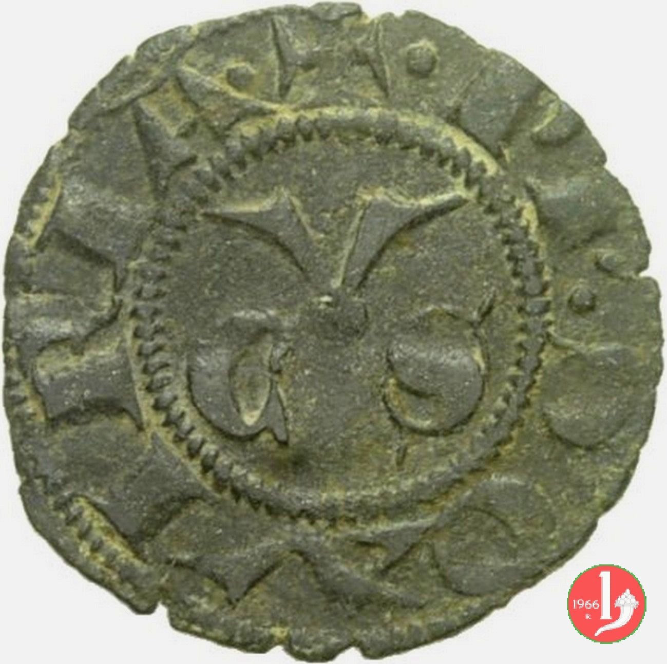 XIV Secolo. I Denari di questo periodo sono stati divisi in 4 tipi principali secondo la peculiarità del Dritto: + 1° t.: croce patente - + 2° t.: croce unghiata - + 3° t.: cavaliere a destra - + 4° t.: lettera A -