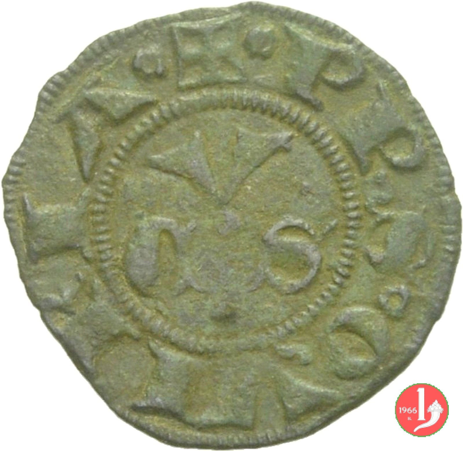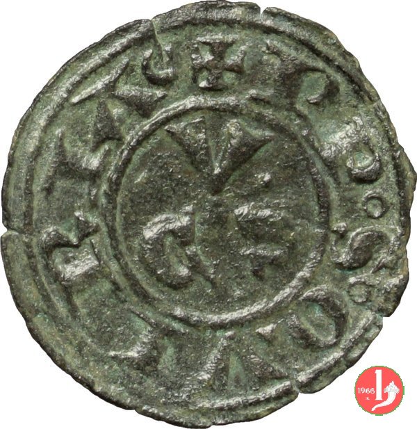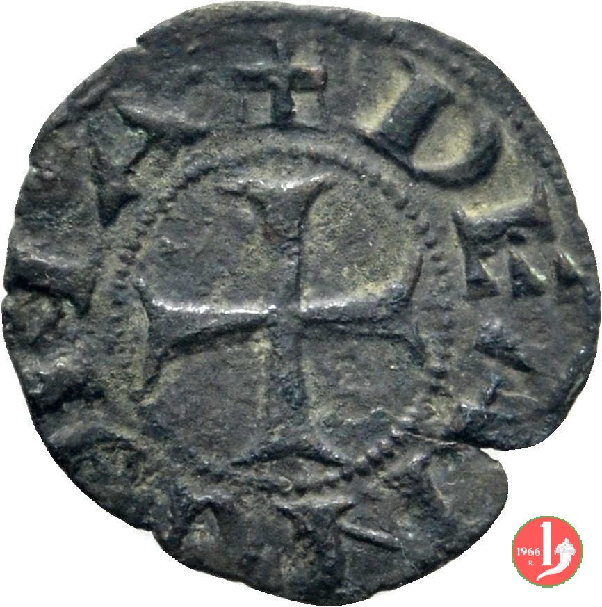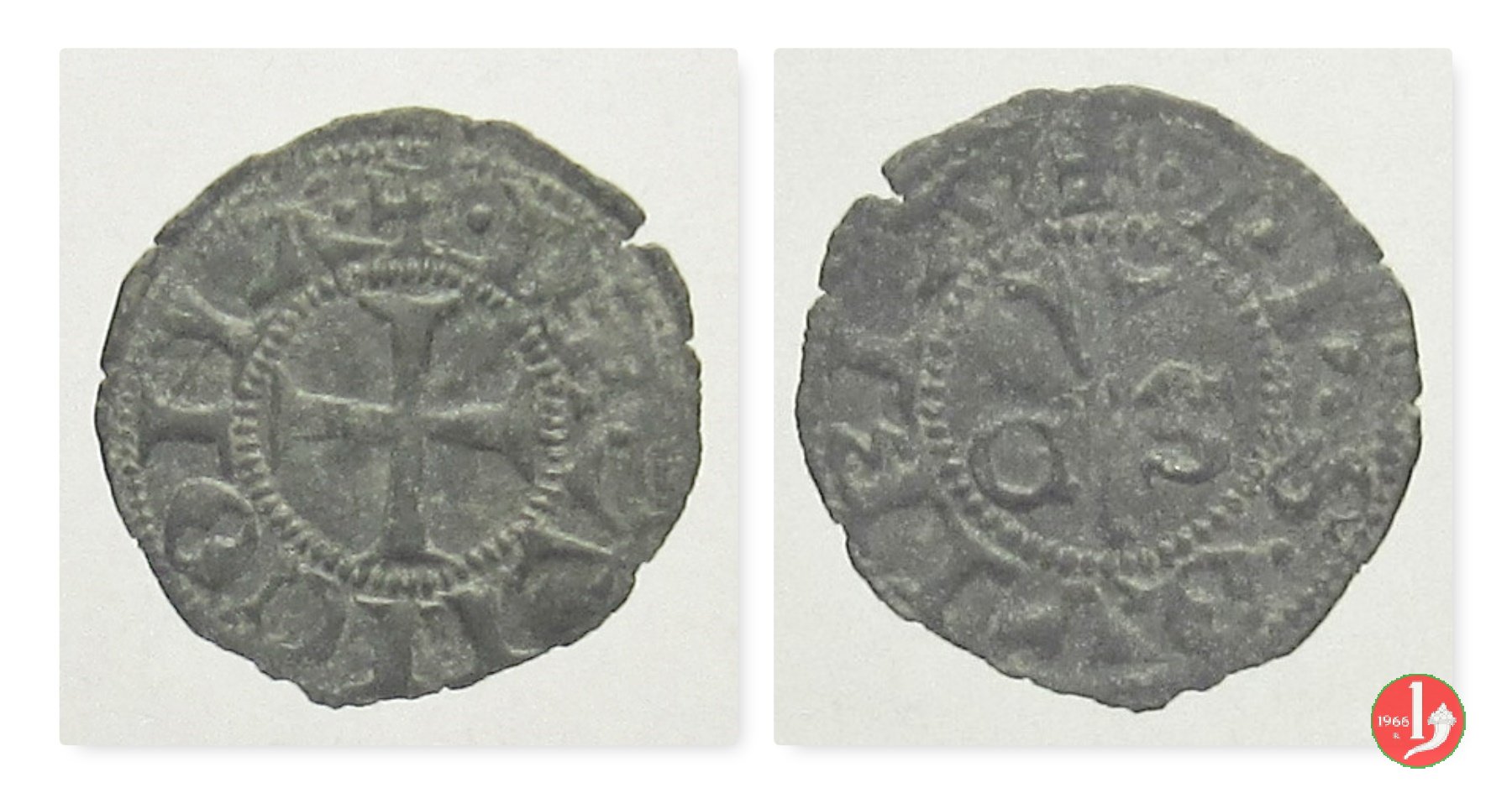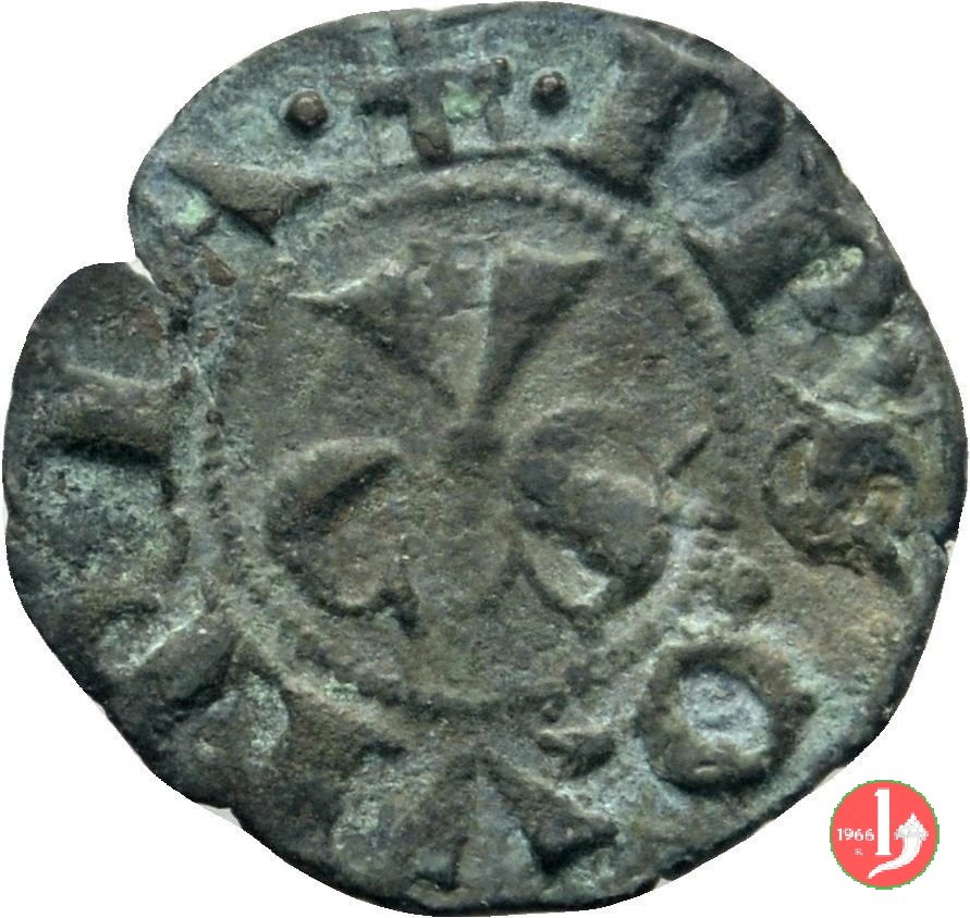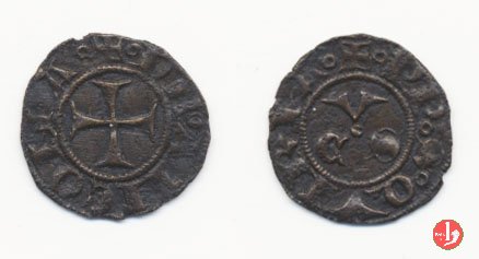 XIV Secolo. I Denari di questo periodo sono stati divisi in 4 tipi principali secondo la peculiarità del Dritto: + 1° t.: croce patente - + 2° t.: croce unghiata - + 3° t.: cavaliere a destra - + 4° t.: lettera A -