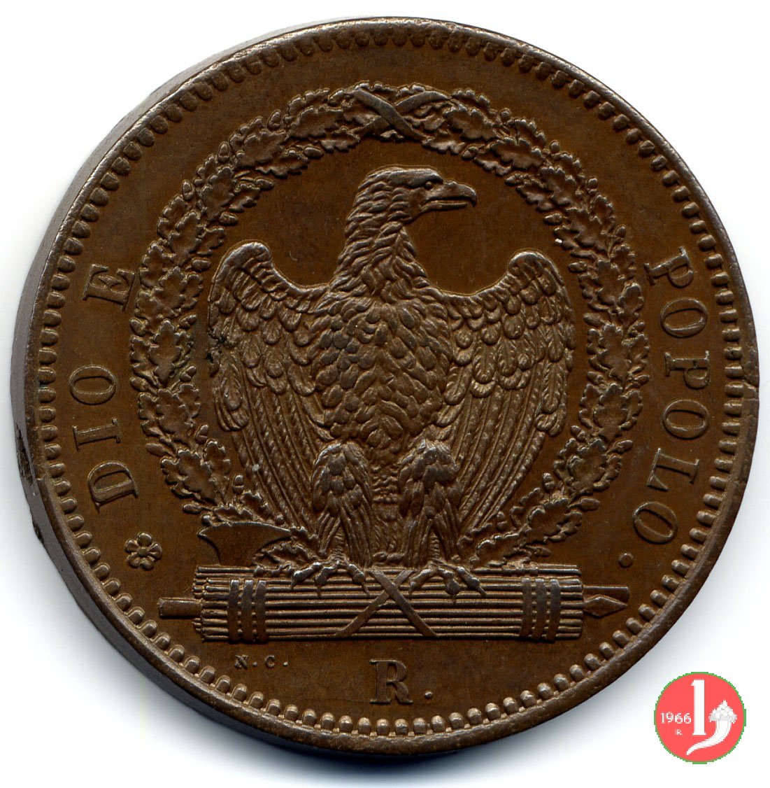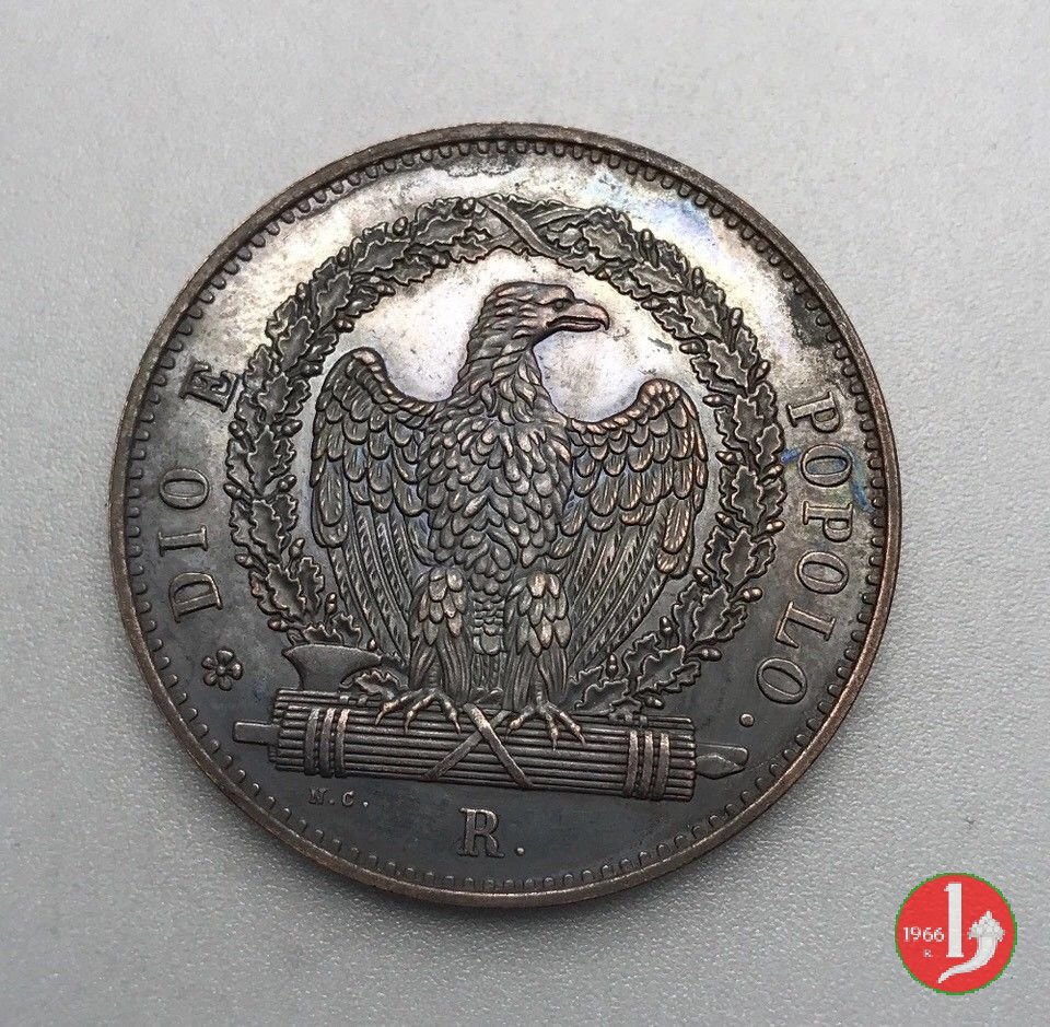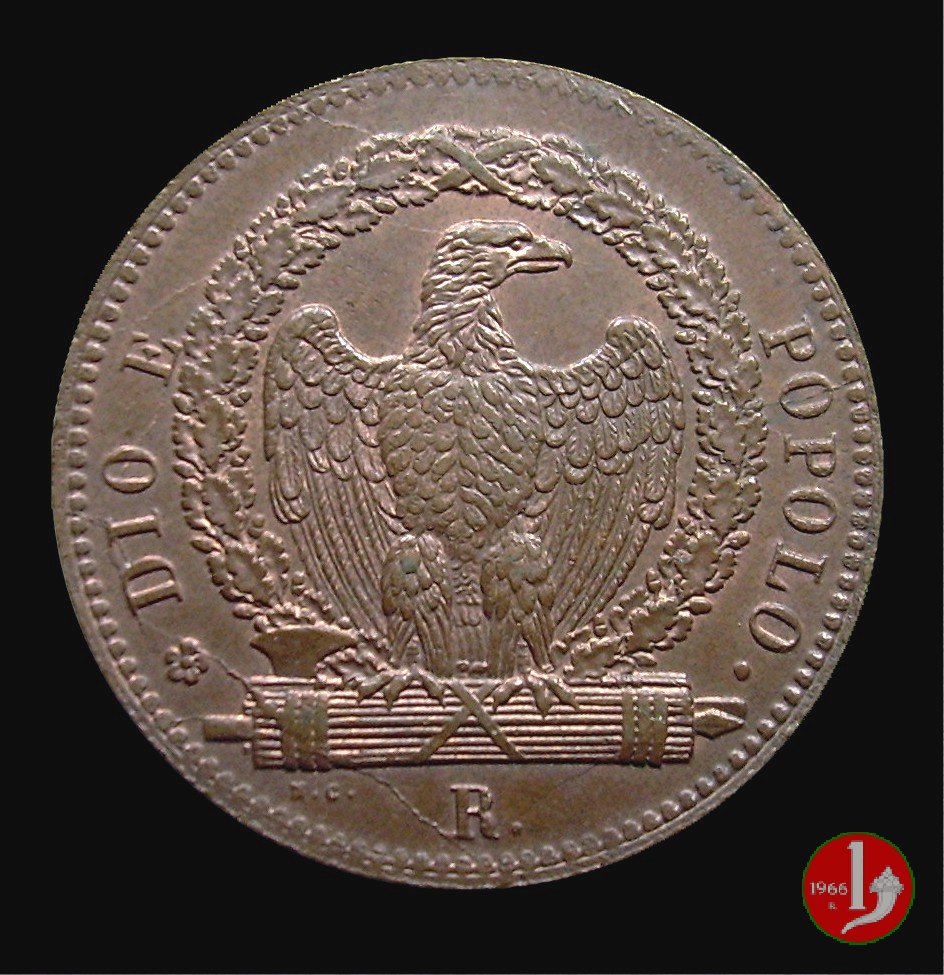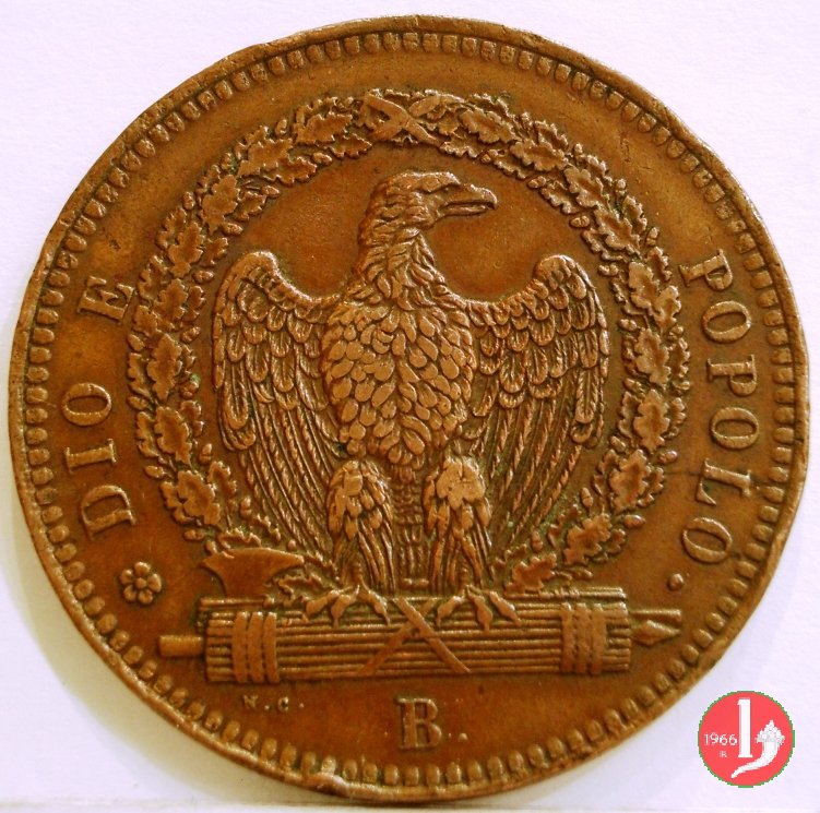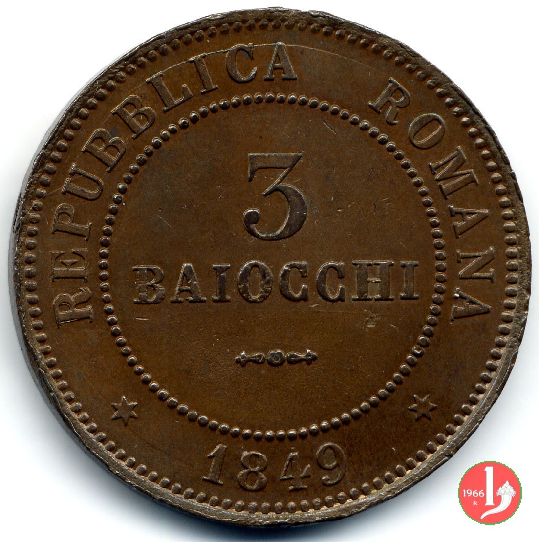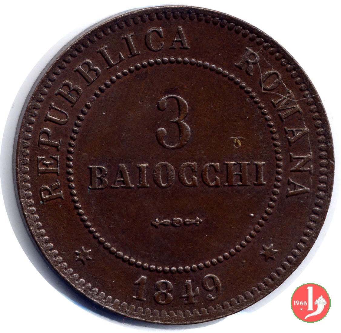 There are discussions about this coin on the forum: 3 baiocchi Repubblica Romana 1849 - ROMA, 3 "tondo" - 3 "piatto" - 3 "piccolo".
