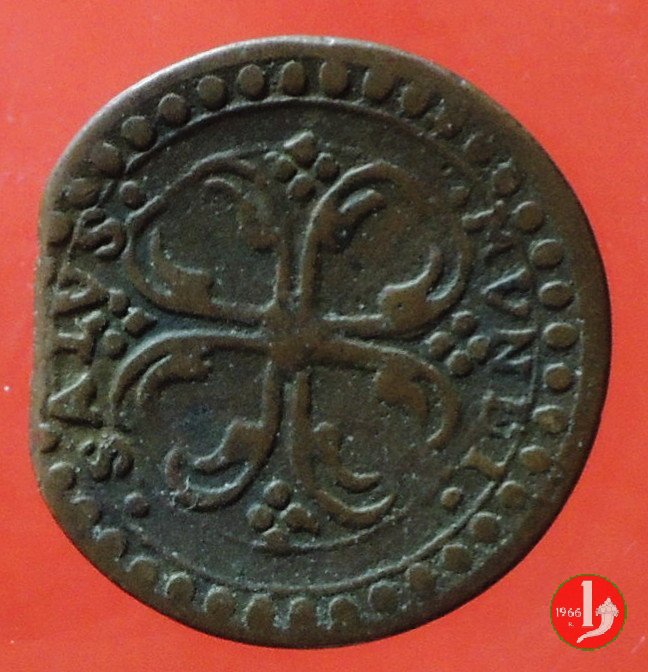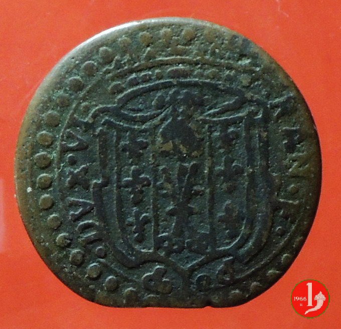 | Moneta che si conosce in due differenti diametri e pesi. La variante "pesante" si riconosce anche dalla differente croce fogliata che risulta anche fiorita e dalla posizione dei P • P • al D/ che debordano dal circolo. | |||||||||||||