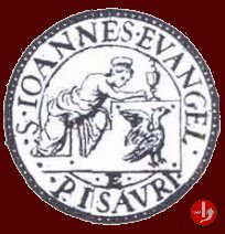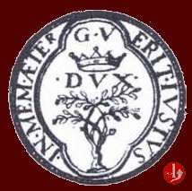 IN •MEM •AETER ERIT •IVSTVS - albero di rovere entro cornice quadrilobata;sopra: G •V ,corona e DVX .S •IOANNES •EVANGEL • ; S.Giovanni seduto