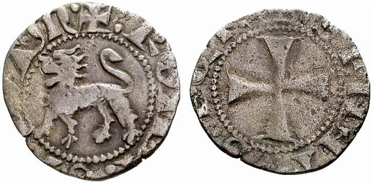 | Classificata come denaro, in realtà il suo peso equivale a quattro denari provisini (quattrino) e quindi si tratta di un multiplo del denaro. Il termine cinquina deriva da una tariffa del tempo nella quale il suo valore corrispondeva a cinque denari paparini. Coniata durante la seconda metà del XIV secolo continuerà a circolare anche nei primi decenni del XV secolo. | |||||||||||||||
