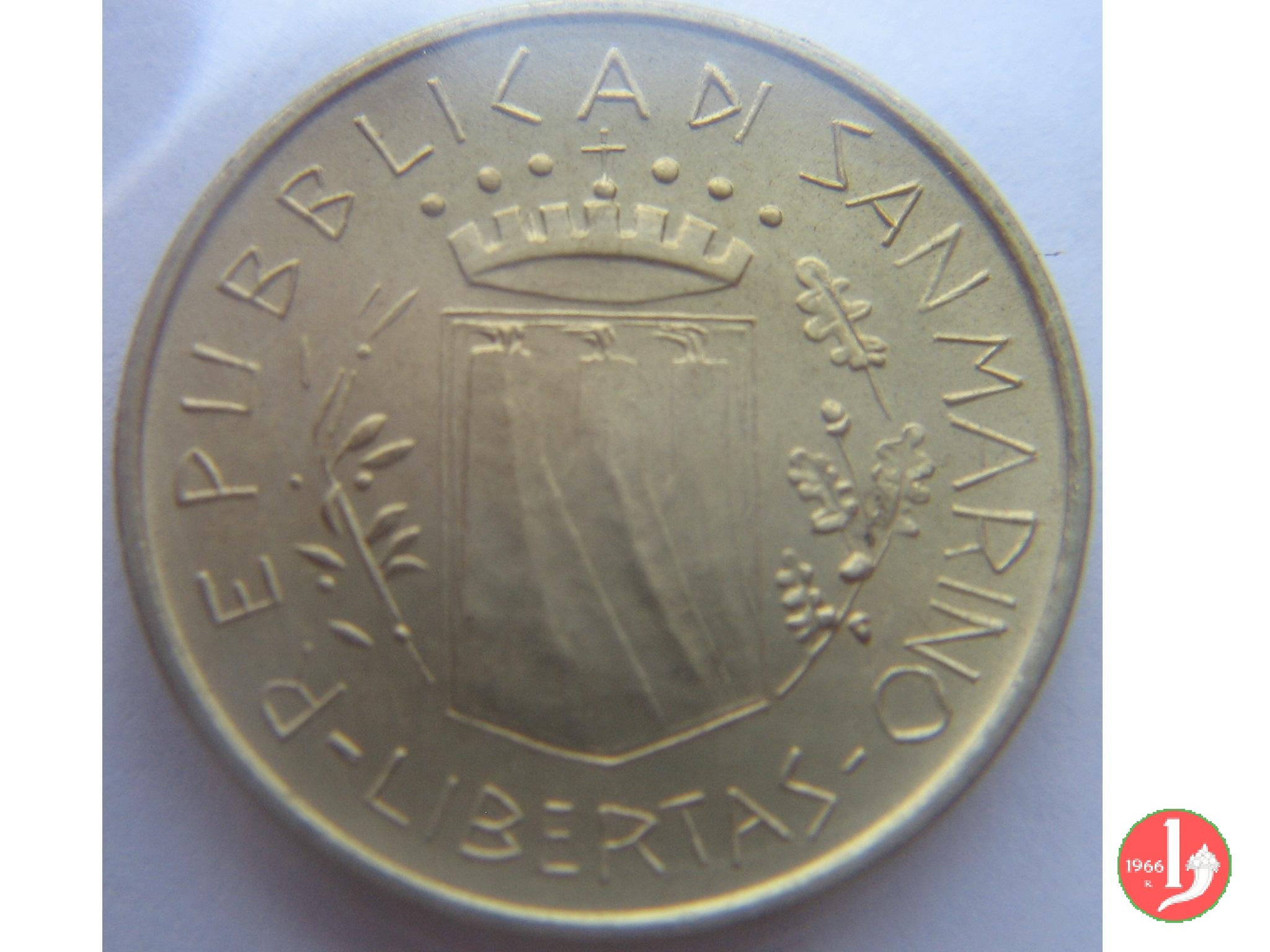 | 1972 | W-SMR2/5-1 | Roma | Garibaldi aiuta la moglie Anita a salire l'erto colle del Titano. La moneta ricorda l'asilo dato dalla Repubblica di San Marino all'Eroe, in fuga da Roma, dopo la caduta della Repubblica Romana del 1849 | C | 291 000 | |||||