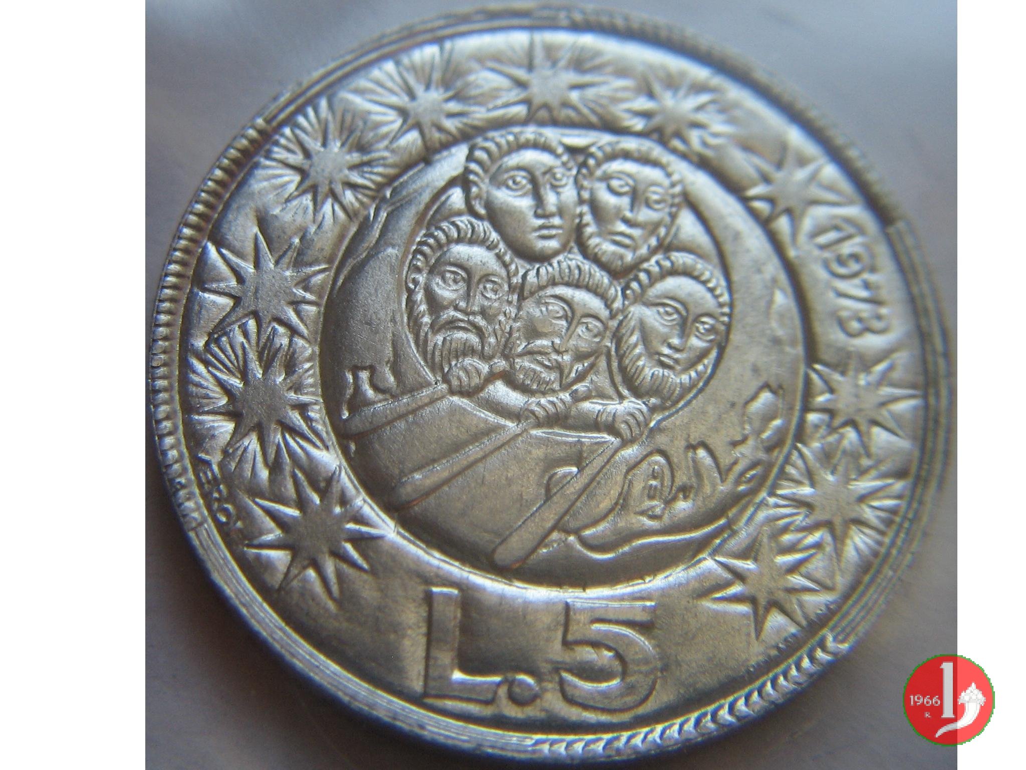 1973 W-SMR2/7-2RomaI 5 uomini sulla stessa barca vagante nell'oceano delle stelle simboleggiano l'umanità diffusa sui cinque continentiC291 000